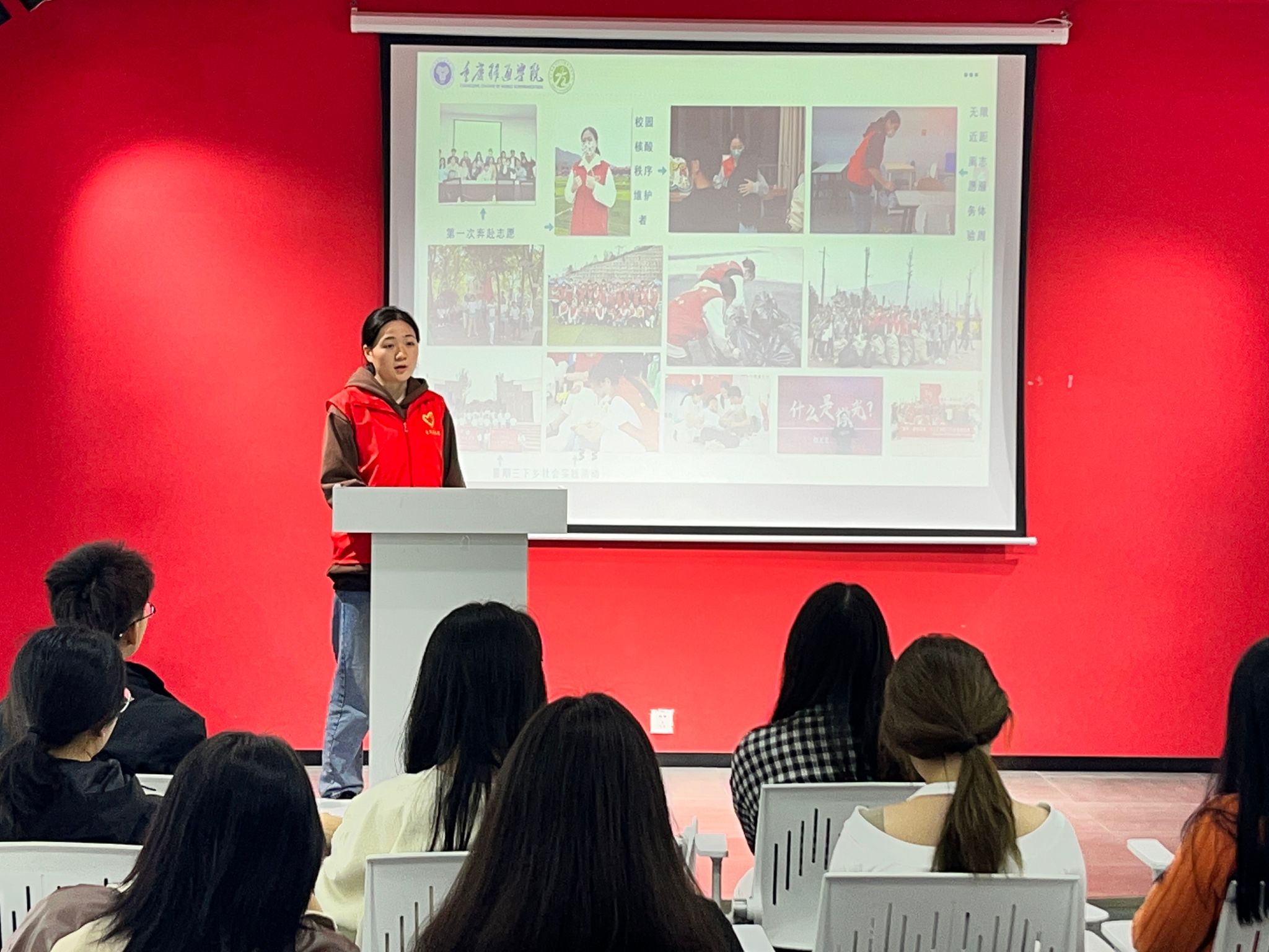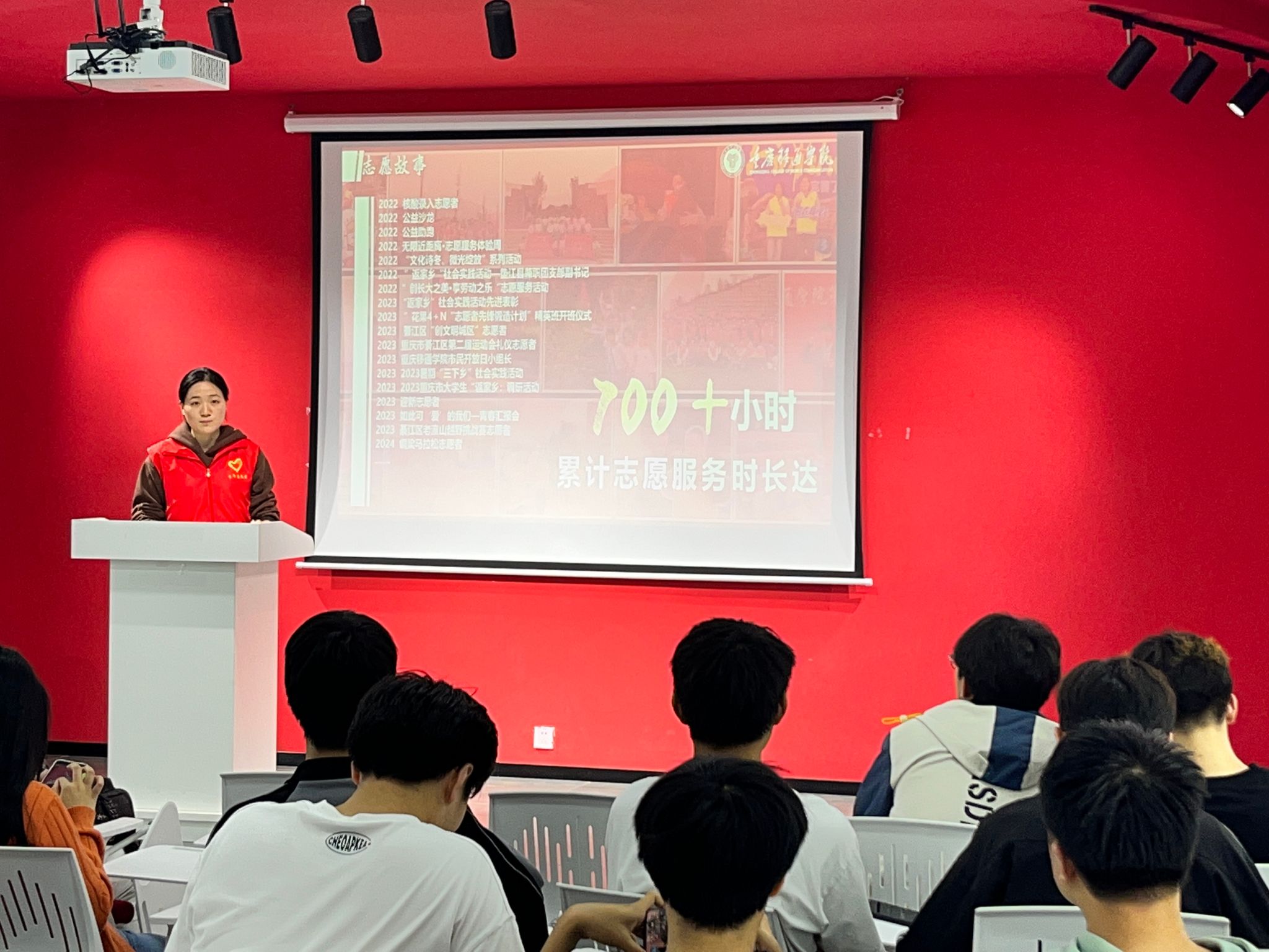 志愿的韵律,传播爱的旋律。为增强青少年的志愿服务意识,积极自主投身于志愿活动,为志愿服务贡献自己的一份力量。2024年4月24号中午12:30到下午13:30《你好,达人》分享会在玉棠书院Talk king演讲中心成功举办。本期分享会由共青团重庆移通学院委员会主办,由重庆移通学院大健康管理学院承办,邀请到了志愿达人一梅蒙,旨在激励广大同学积极参与志愿服务活动,培养社会责任感,同时推动校园文化的繁荣发展。