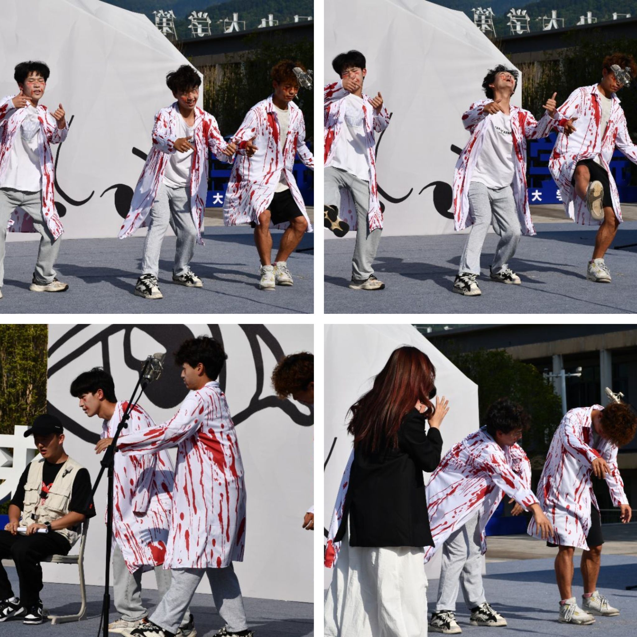 4月27日由大健康管理学院带来的喜剧题材短剧《丧尸》圆满收官。恭喜大健康管理学院荣获戏剧节优秀组织单位奖,他们的出色组织能力和协调工作为戏剧节的成功举办贡献了重要力量。同时,特别祝贺《丧尸》的演员桂豪杰荣获最具潜力名角奖,这是对他在舞台上才华横溢、表现出色的肯定和鼓励。