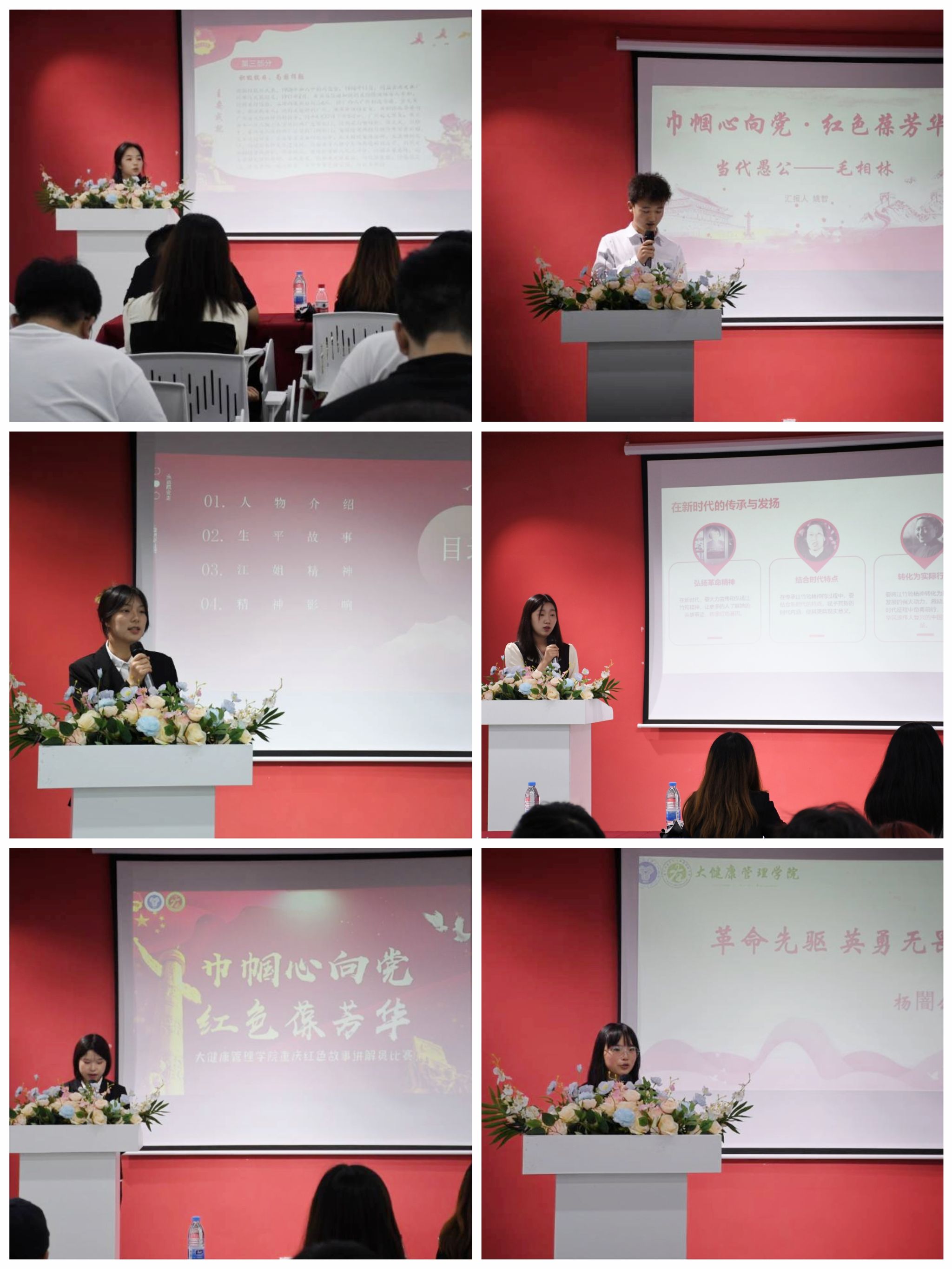 为传承红色基因,弘扬爱国主义精神,激发大健康管理学院入党积极分子们讲好红色故事的热情。5月13日16:00,大健康管理学院在玉棠书院Talking演讲中心举办的以“巾帼心向党,红色葆芳华”为主题的重庆红色讲解员大赛圆满落幕!本次大赛旨在激励积极分子们以史为鉴,读懂红色故事,传承先辈革命精神!青年一代更需坚定理想信念,在新时代大潮中踊跃潮头!