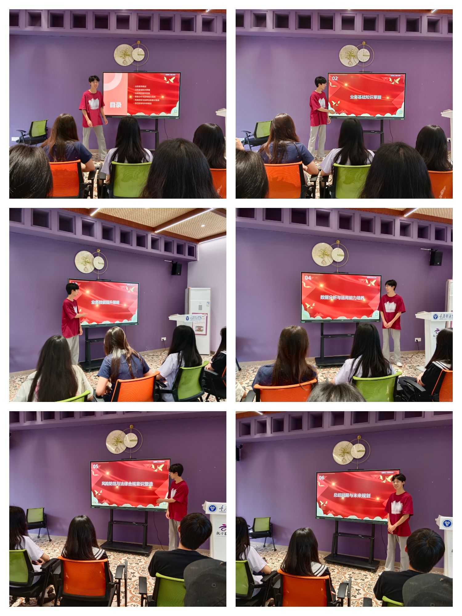 明其源,知其意。活动伊始,团支部书记熊家鑫简要介绍了业务素养培养的概念和重要性,强调了在当前竞争激烈的社会环境下,具备扎实的业务素养和出色的综合能力对于大学生个人成长和事业发展的重要性。他强调,业务素养不仅是大学生在校期间提升自我竞争力的重要法宝,更是未来职场中不可或缺的核心素质。在授课过程中,熊同学通过案例分析、互动问答等形式,引导同学们积极参与和思考,让同学们更加明确自己的职业方向和经验。
