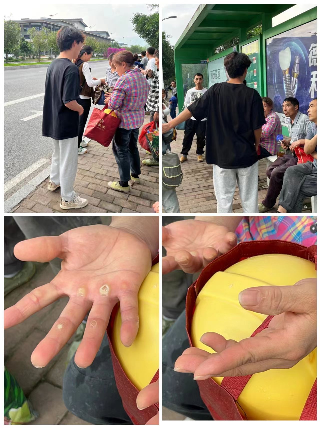 紧接着,建筑工人们就向我们展示了他们的双手,那是一双饱经沧桑的手。粗糙且布满老茧,关节粗大而有力,上面还沾着泥土与灰尘。这双手搬过无数沉重的砖块,紧握过各式工具,在建筑工地上挥舞劳作。有同学问:“你们日复一日的这样劳作觉得辛苦吗?会不会后悔?”他们反而说:“我们已经习惯了这样的生活了,辛苦倒是辛苦,但一想到我们家里还在等待我们回家,日子便有了盼头,也算是不后悔吧。”简简单单的话语,隐含出建筑工人们真挚的感情,他们为了自己的期望,辛苦劳动,他们是值得敬佩的。