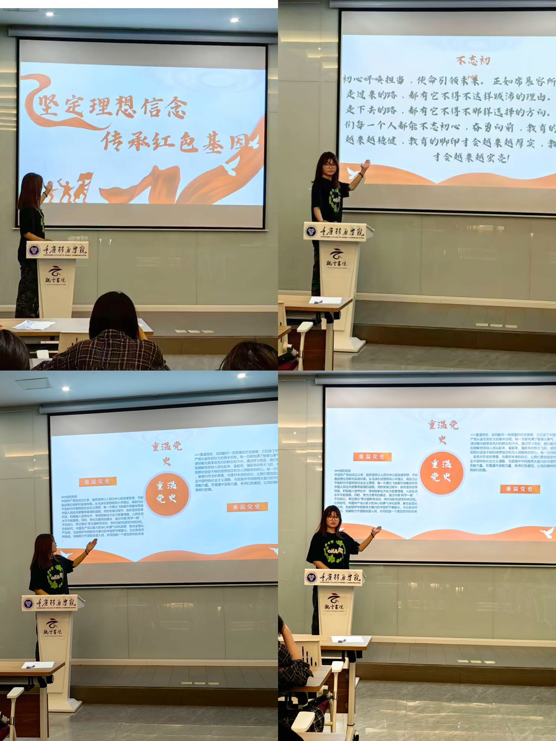 在党的光辉照耀下,为深入学习贯彻党的历史,进一步激发广大团员青年的爱国情怀和奋斗精神,5月20日,一场别开生面的“坚定理想信念,传承红色基因”主题团日活动在冬至·多媒体教室成功举行。本次活动以重温党史为核心,邀请了优秀团员分享红色故事,旨在引导同学们坚定理想信念,为新时代的青年成长注入红色动力。