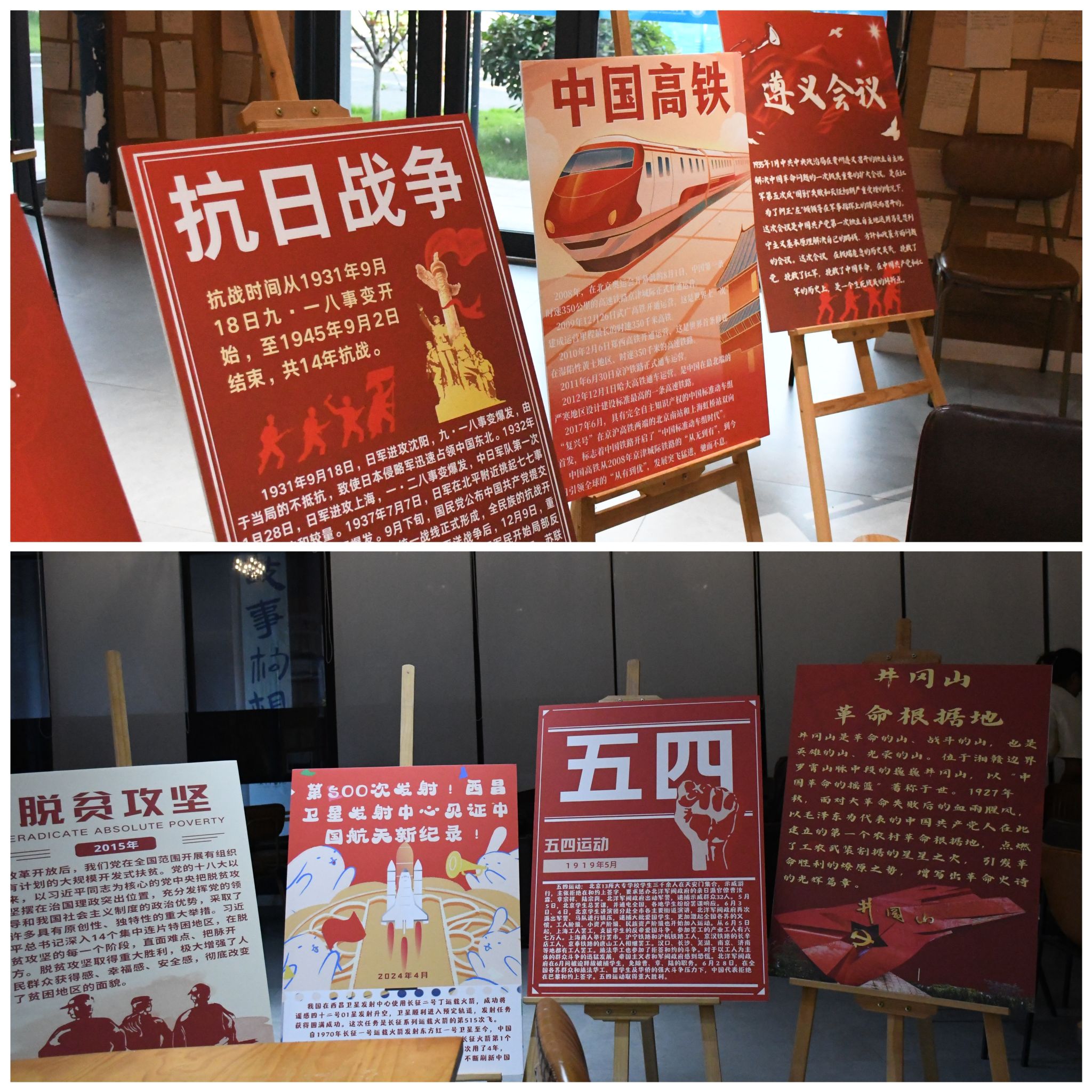 “匠心独运展芳华,巧手轻牵映日红。”活动开始前,由组织部干事,利用信息技术查找1921一2024年中国共产党带领中国人民走过的坎坷历史并取得伟大的成功,收集发生的典型事例和配套图案以红色展板的形式展示出来。以此来让学生感受革命先辈为国抛头颅洒热血的事迹。革命先辈们经常会在夜晚放飞纸鸢,借助微弱的星光和月色,将纸条系在纸鸢上,让纸鸢承载着重要的信息,飞向远方。它们在空中飞舞,那是革命者们坚定的信念和不屈的精神的化身。