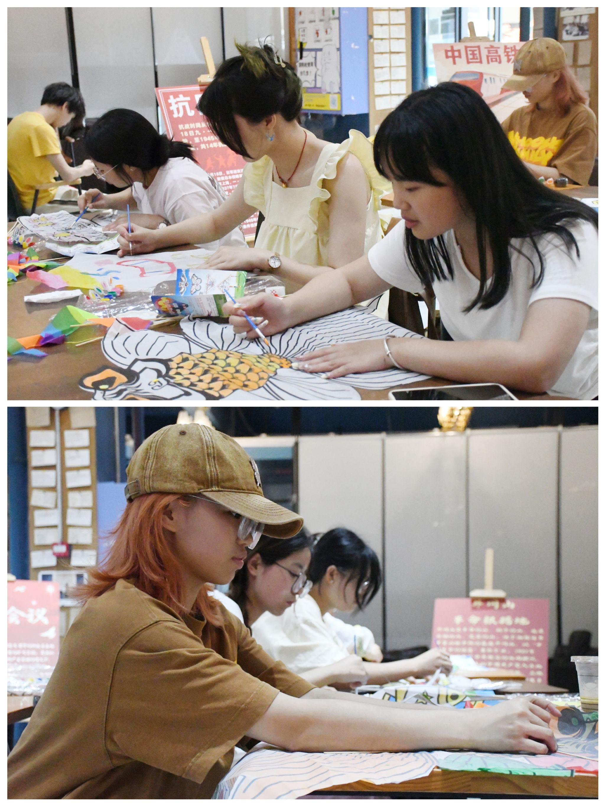 “非遗文化绽新姿,传承精神永不移。”活动伊始,活动组织者根据相关红色展板引导同学们手动描绘红色纸鸳。同学们发挥自己的创造力与想象力,为自己的纸鸢绘出浓墨重彩,体现出学生艺术修养能力和爱国情怀。绘画纸鸢,是纸鸢制作中的一项重要技艺。在一张轻盈的纸上,同学们用细腻的笔触描绘出形态各异的图案和色彩,使得纸鸢在飞翔时更加绚丽多彩。这些图案不仅具有极高的审美价值,更蕴含了深刻的红色文化内涵和历史记忆。让同学们在回望历史中,铭记那亘古不变的英雄事迹。