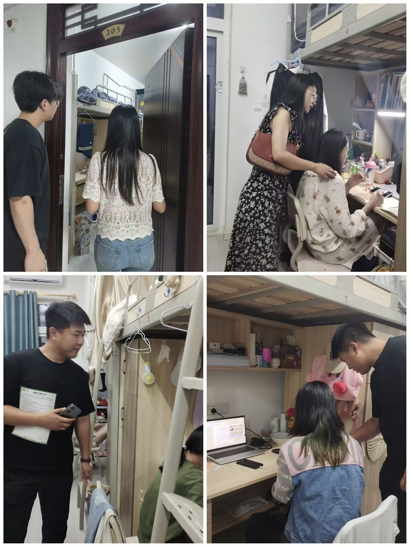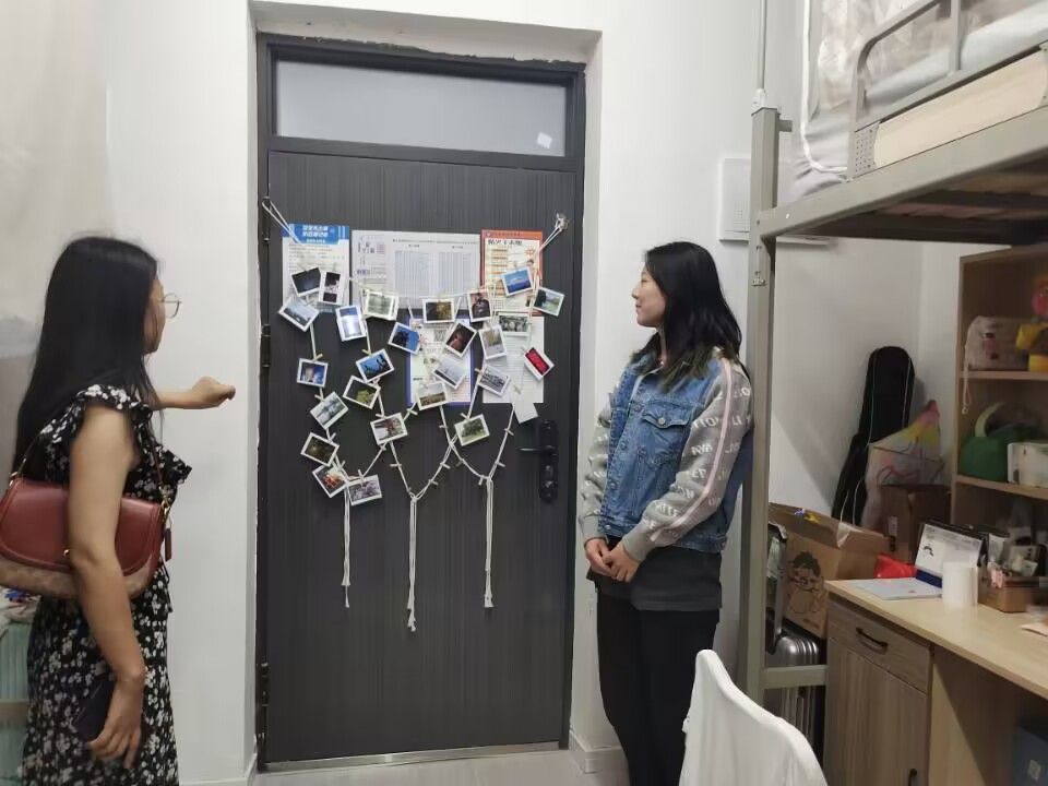查寝过程中,孙泽宇老师与童学容老师不仅关注寝室的整洁度,还关心同学们的生活习惯和身心健康,两位老师与同学们亲切交流,询问生活和学习情况,给予关怀和指导。同学们则积极配合,主动展示寝室的布置和整理情况,分享自己在维护寝室环境方面的经验和心得。