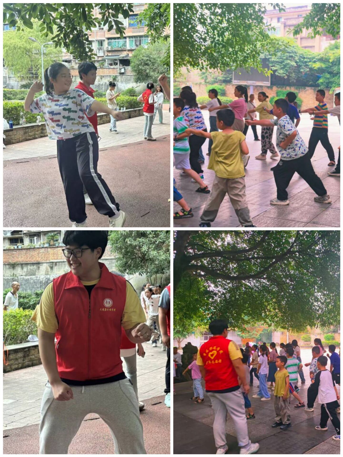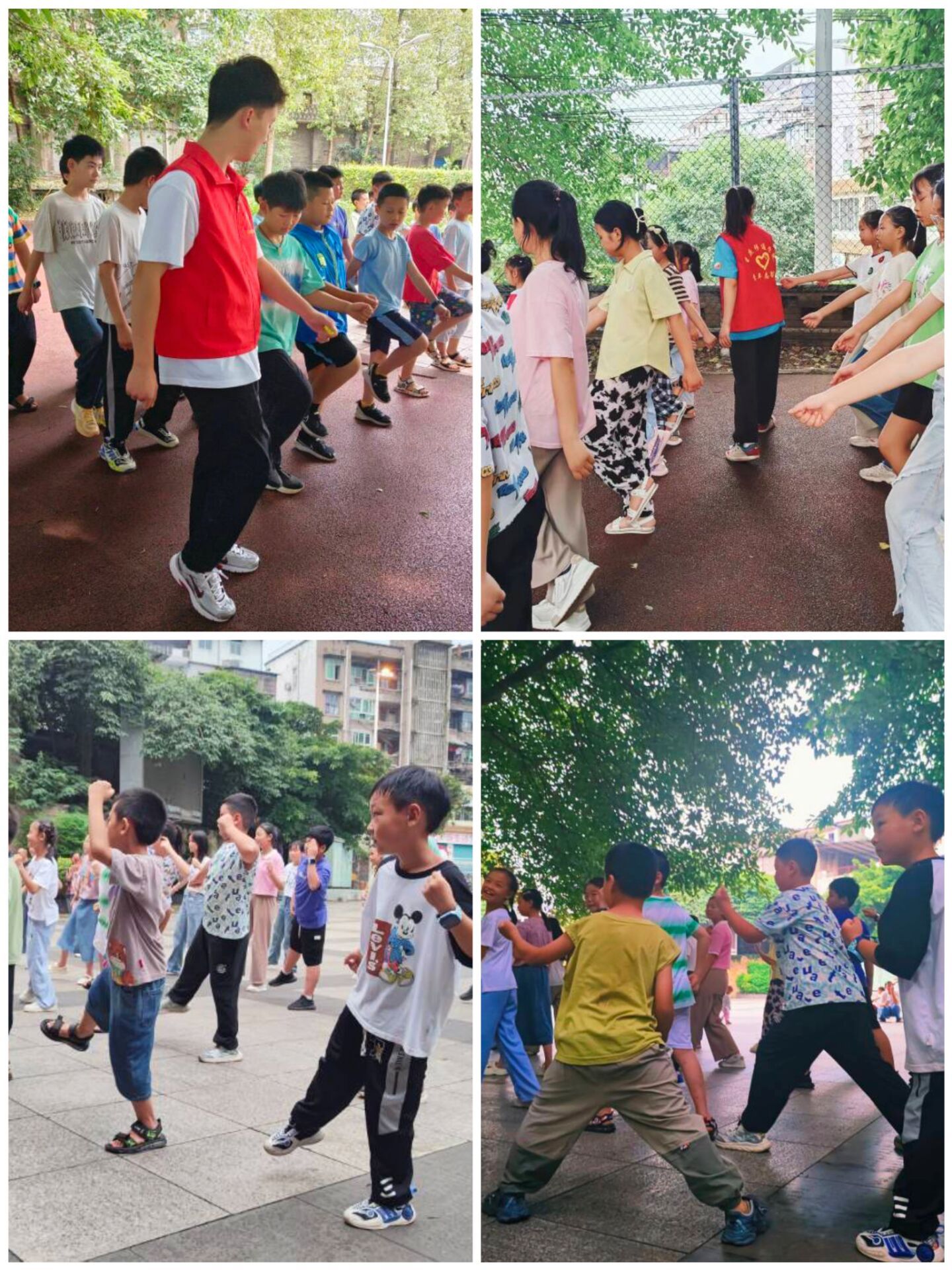 在训练开始前,志愿者们首先向小朋友们介绍了军体拳的基本概念和动作特点。听着志愿者们的讲解小朋友们对军体拳充满了好奇和兴趣。随后,志愿者们开始了基本动作的教学。他们从简单的拳法、腿法开始,耐心地示范每一个动作,并指导小朋友们进行模仿和练习。小朋友们虽然一开始有些笨拙,但很快就能够熟练地掌握这些基础动作。