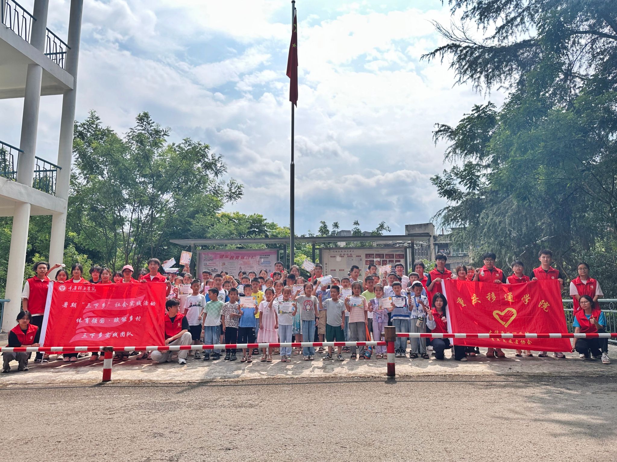 只要我们勤劳耕耘,成功之花必将绽放。本次“三下乡”社会实践活动,“体育强国·赋能乡村”实践团队的志愿者带着对乡村的憧憬与关爱,饱怀满腔热情与责任担当,踏上这场大石壁社区暑期趣味体育经纪人实践的征途。在颁奖仪式的最后,打通镇人大代表为我们“体育强国·赋能乡村”三下乡暑期社会实践活动团队每一位志愿者颁发了优秀志愿者荣誉证书。这不仅是对我们队伍的由衷感谢,也是对我们工作的至心肯定。我们盛夏相约,践行志愿者与小朋友、社区与学校的青春之行,我们志愿者团队会继续汲取体育精神,传播优秀体育文化,以锦薄之力建设体育强国。