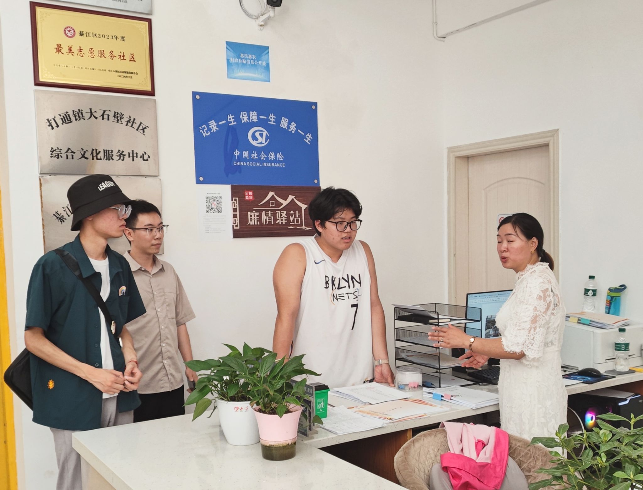 实践团刚一抵达目的地,就受到了社区工作人员的热情接待和支持,这份热情似乎为队员们注入了新的活力。队长汪圣骐带领全体团队成员前往大石壁社区服务中心,工作人员详尽地介绍了即将使用的设施与场地,让每位成员对未来几日的活动有了清晰的认识,并深刻了解了社区的基本情况。
