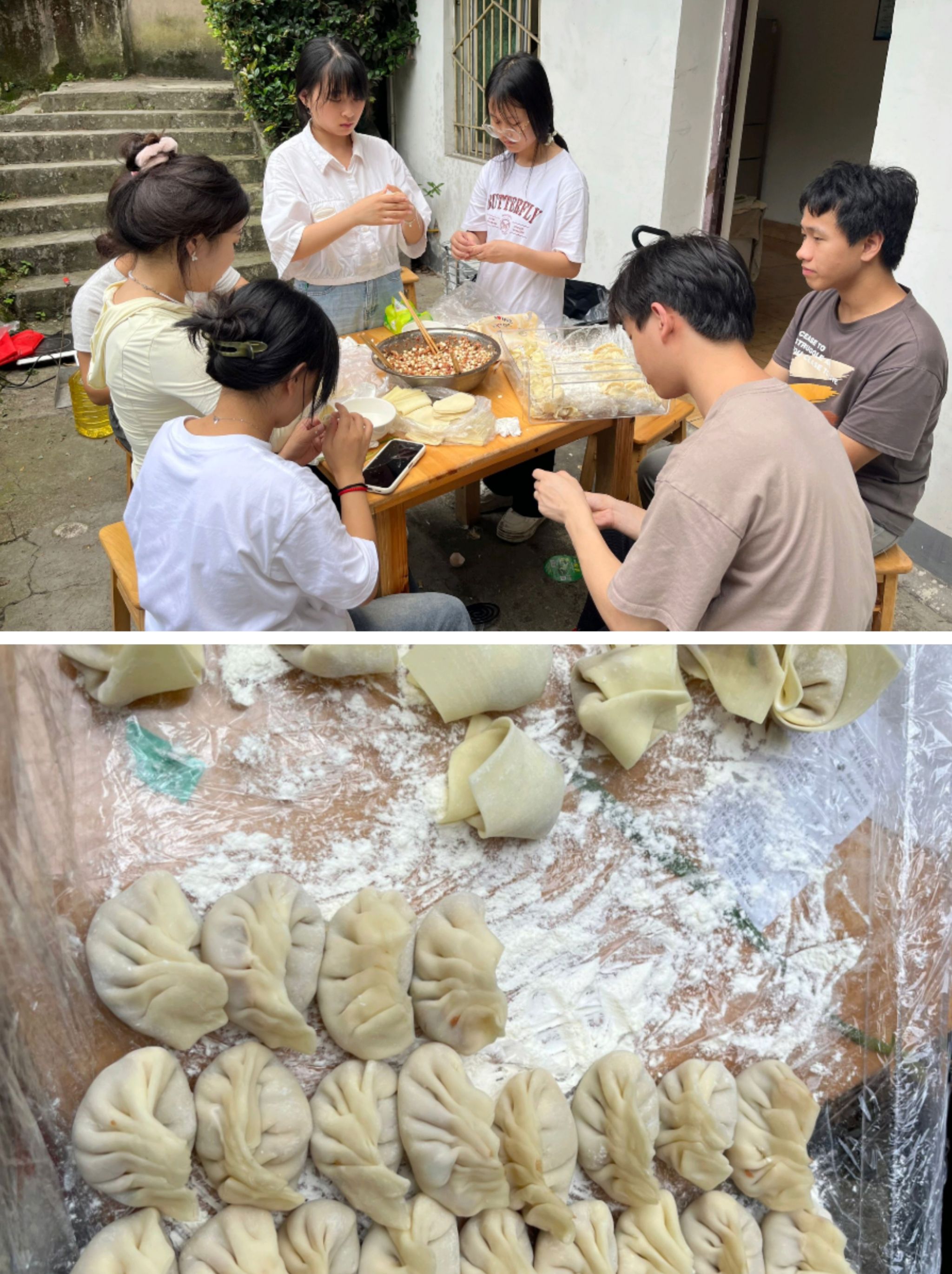 参观结束后,副队长带领一部分同学对大石壁社区进行了深入的探索,为后续的调研工作打下坚实基础。而队长汪圣骐则带领其余的同学在配餐室中积极做好后勤工作,确保调研团队返回时能够迅速恢复体力。晚餐的准备过程中,同学们还动手制作了第二天早餐的饺子,这一过程不仅提升了团队协作的愉悦感,也让大家深刻体会到团结努力的成果。