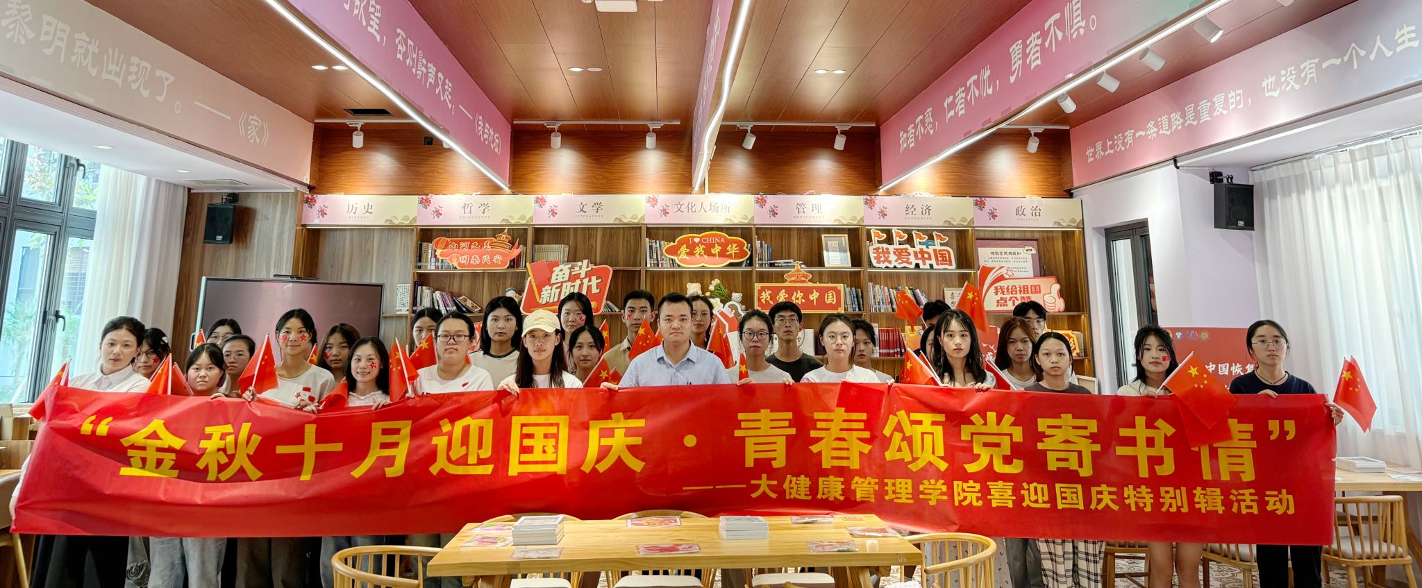 大健康管理学院于9月27日14点在观云书院华文·芒种书吧举办“金秋十月迎国庆·青春颂党寄书情”——大健康管理学院喜迎国庆特别辑活动。本次活动大健康管理学院有幸邀请到马克思主义学院思政课教师、綦江校区课程负责人、綦江校区师生党课培训教师陈安鹏老师为同学们讲解中国特色社会主义的发展。