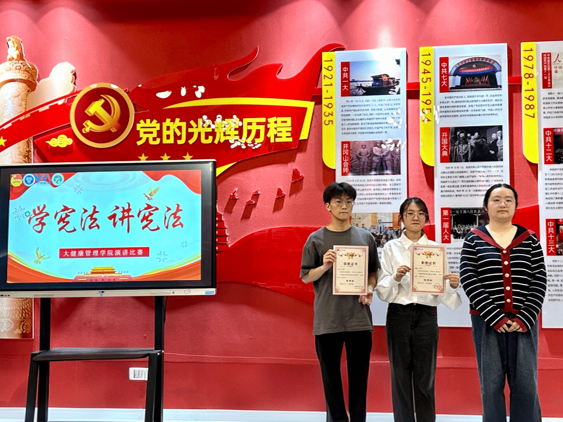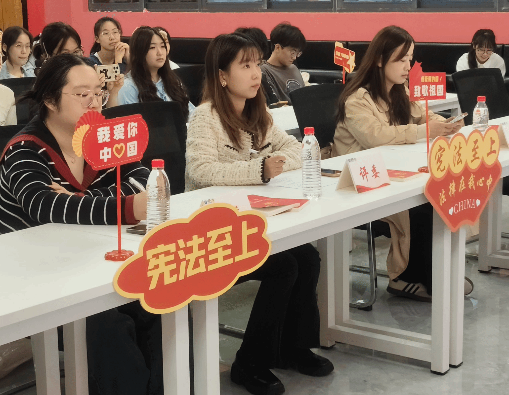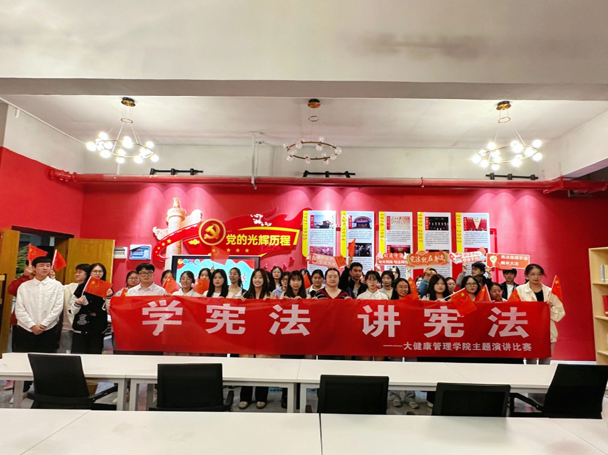 为全面贯彻落实党的二十大和二十届二中、三中全会精神,深入学习贯彻习近平法治思想,推动青少年宪法宣传教育常态化长效化,大健康管理学院于10月11日下午17点在綦河书院党团活动室举办了以“学宪法,讲宪法”为主题的演讲比赛。本次演讲比赛特别邀请到了大健康管理学院社团活动版块指导老师邱璐老师、组织建设板块老师徐亚琼老师和宣传板块指导老师余隆艺老师担任大赛评委。