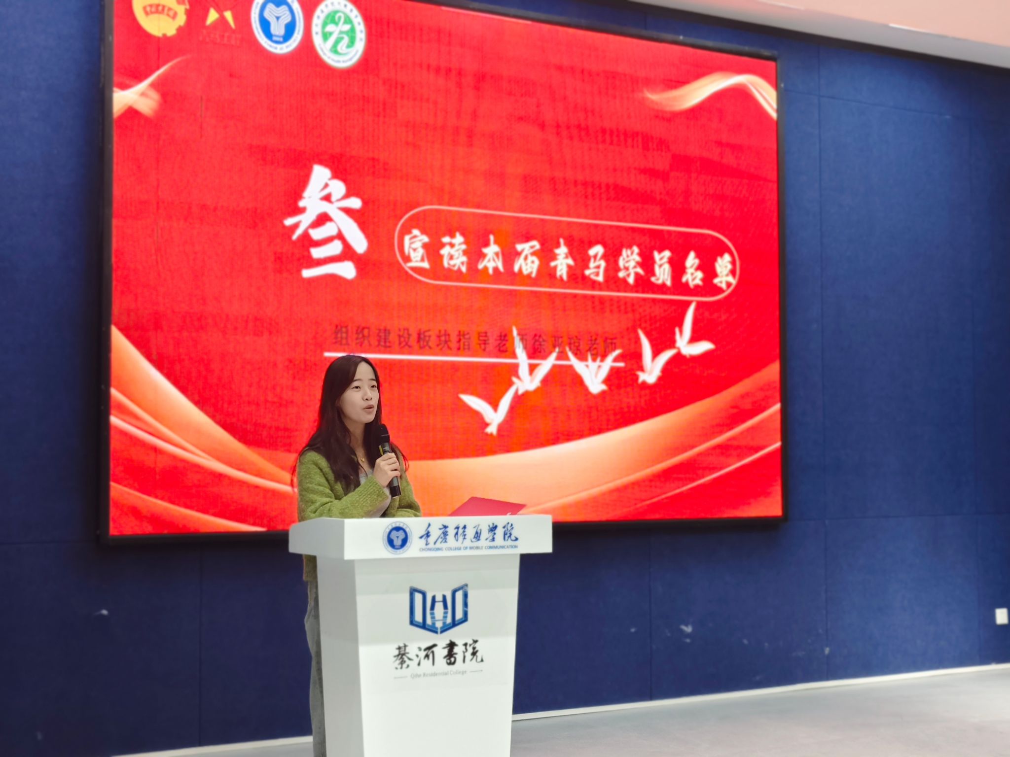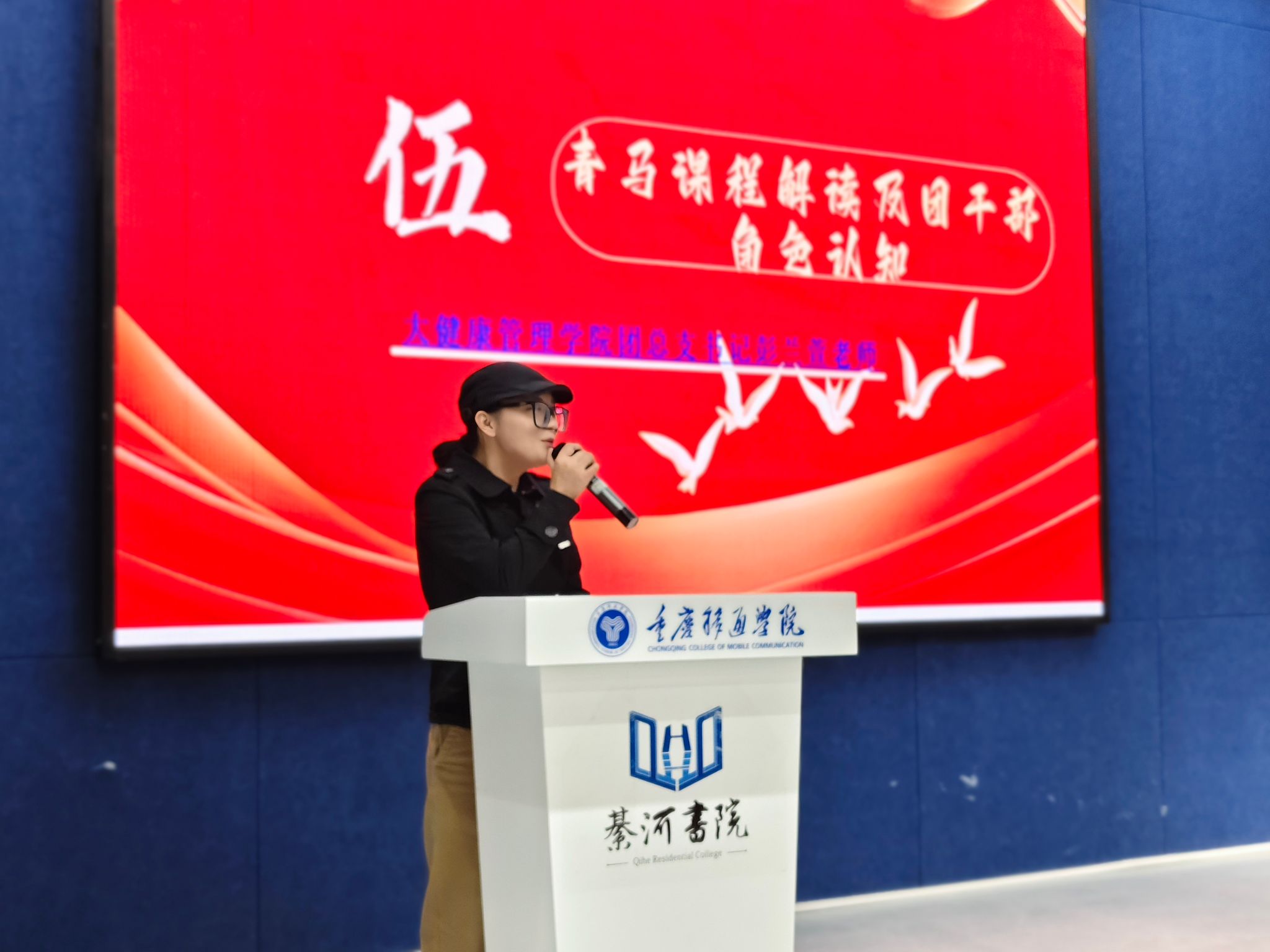 为深入实施青年马克思主义者培养工程,加强广大青年对青马工程的理解与认识,培养爱国主义青年,10月18日中午,大健康管理学院在綦河书院2号楼观涛·多功能报告厅开展“金秋十月铸辉煌·青马启航筑梦想”——大健康管理学院第十五期“青马工程”完骨初阶班开班仪式暨理论专题第一讲,由学院团总支书记彭兰萱担任主讲老师。学院组织建设板块指导老师徐亚琼老师出席本次会议。