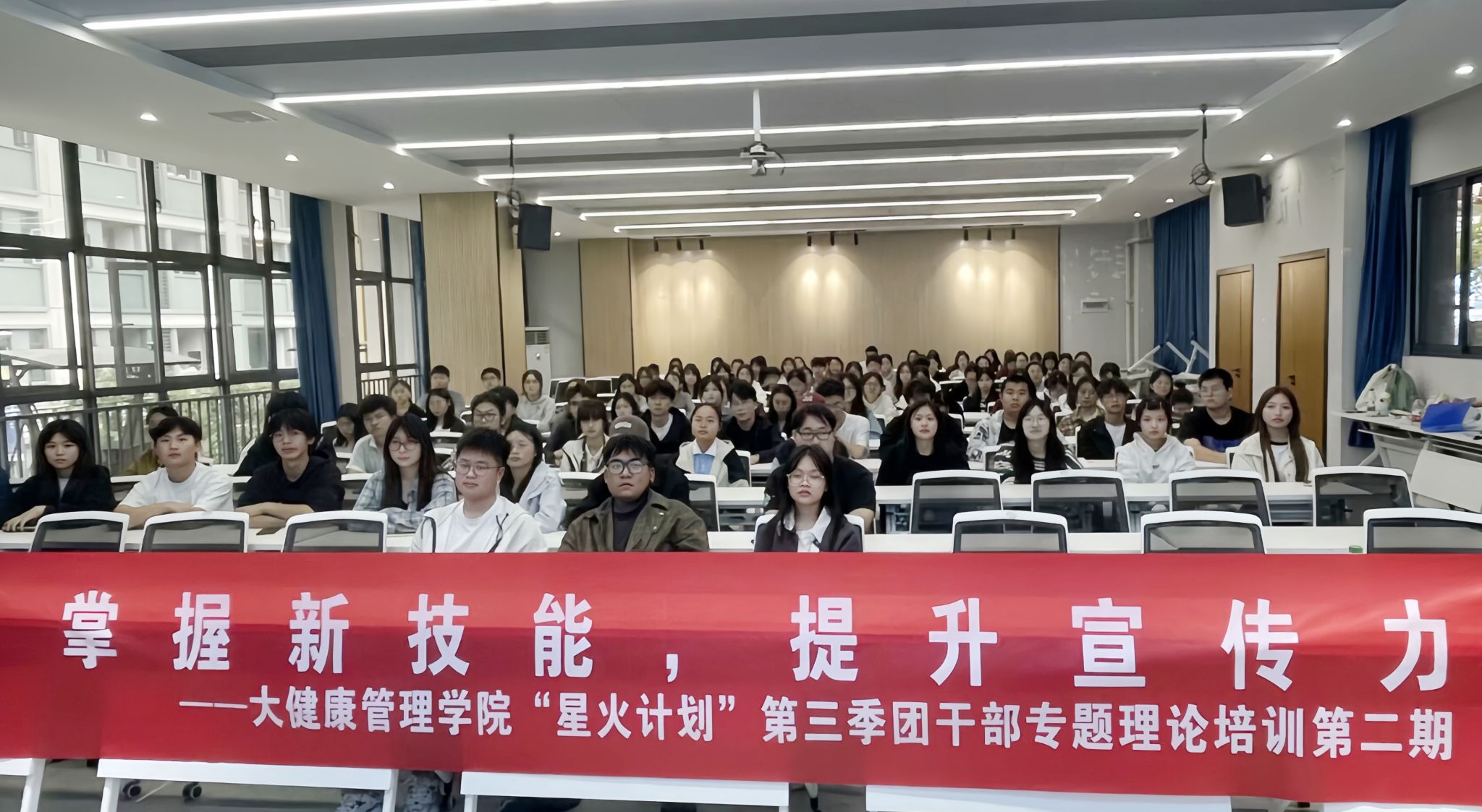 为积极响应学院关于提升宣传工作质量的号召,进一步增强团干部的新闻宣传能力,大健康管理学院于10月25日中午,在綦河书院二号楼观涛•多功能报告厅举办了“掌握新技能·提升宣传力”——大健康管理学院“星火计划”第三季团干部专题理论培训第二期。本次培训邀请了中国商业联合会认证高级摄影师、大健康管理学院团总支学生骨干张毓宽,宣传调研部学生骨干伍晨曦以及大健康管理学院办公室学生骨干崔永七作为本次活动的主讲嘉宾,共同为团干部们共同带来了一场知识与实践的盛宴。