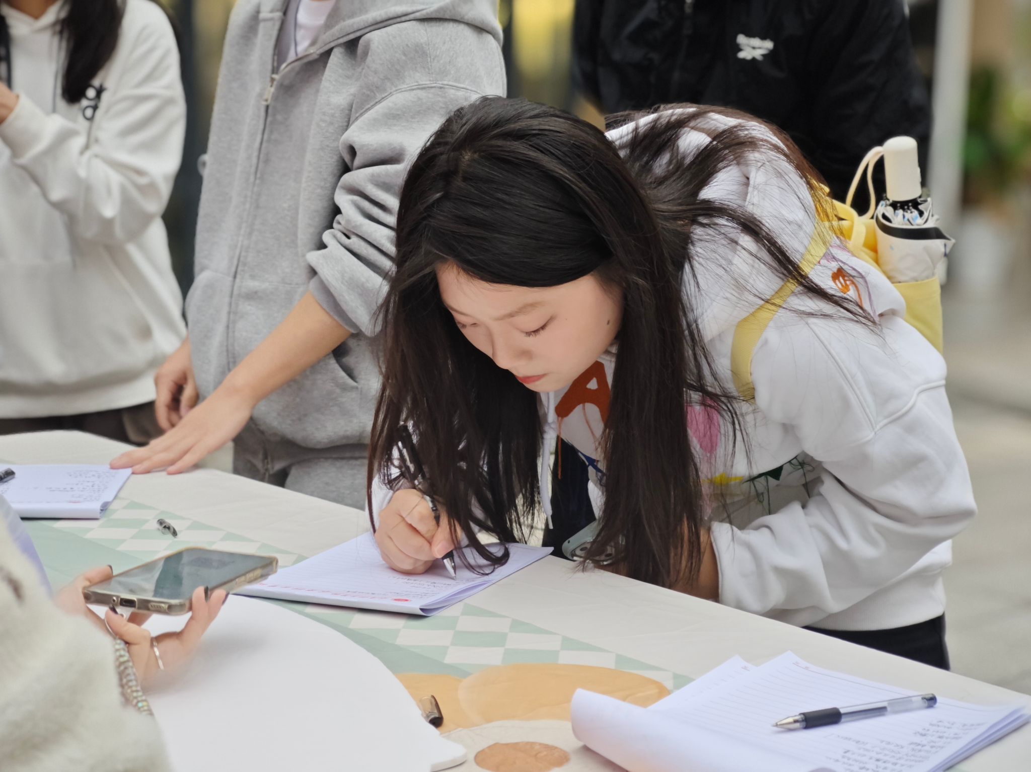 活动现场人声鼎沸,同学们带着自己精心准备的衣物、文具等生活、学习用品前往捐赠区域。在主持人的引导下,他们将捐赠物品投入捐赠箱并在留言册上写下对藏区孩子们美好的祝愿。活动现场,志愿者们还与捐赠者仔细确认每一件捐赠物品的信息,确保物资能够准确无误地送达藏区孩子们的手中。随着捐赠活动的持续进行,捐赠箱逐渐被填满,留言册上的祝福也越来越多,每一张笑脸、每一件物资都传递着爱的力量。