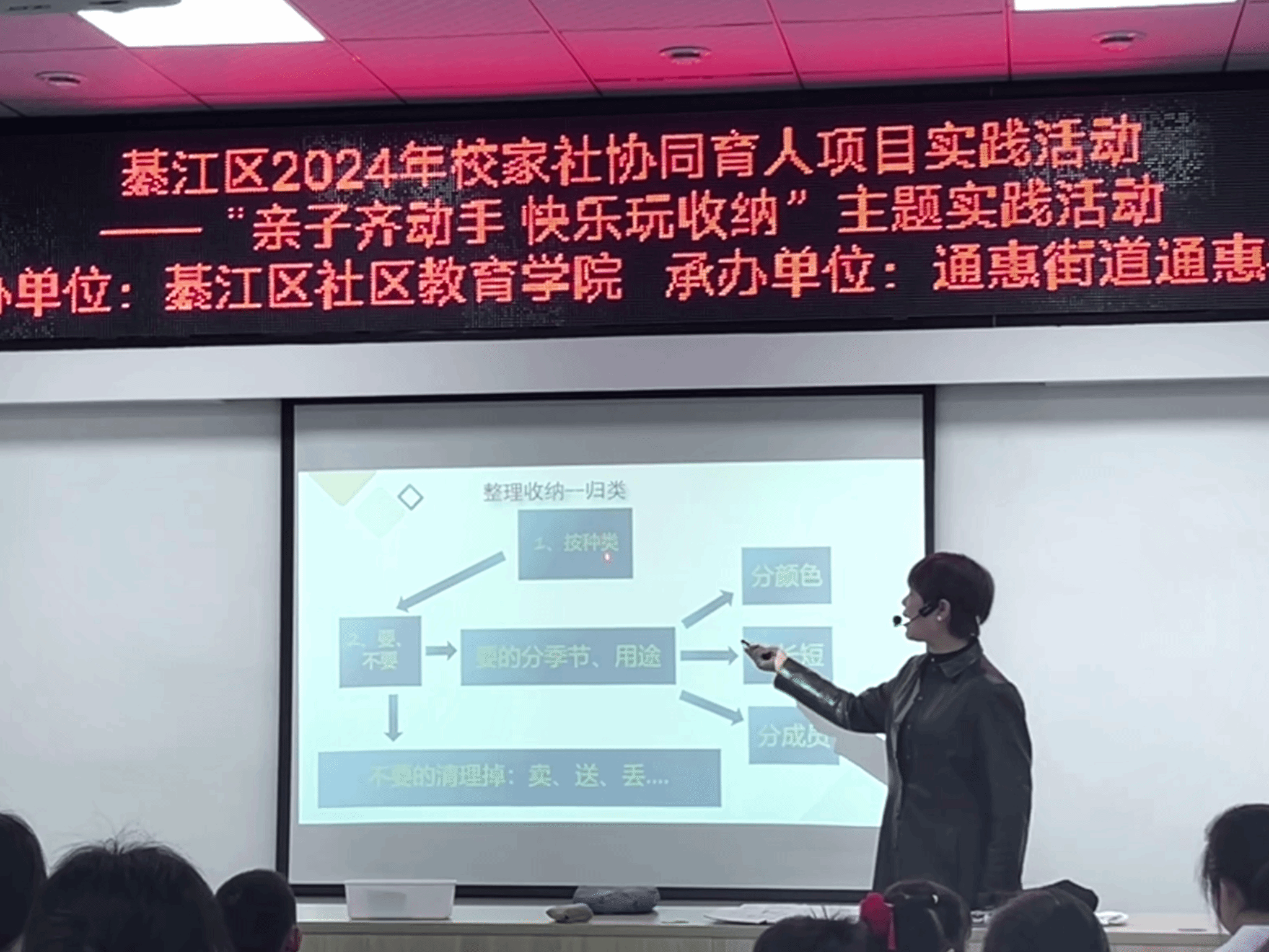 活动现场,来自綦江区名师堂职业培训学校的王芳老师通过生动有趣的讲解,给小朋友们传授了归纳整理的基本知识和技巧。王老师热情地邀请家长和孩子们上台互动,从如何分类衣物到合理摆放物品,详细地演示了物品整理的细节,不仅让小朋友们在轻松愉快的氛围中对收纳整理有了更加深入的了解,更增进了亲子之间的默契和感情,让亲情在彼此的陪伴与合作中得到了进一步的升华。
