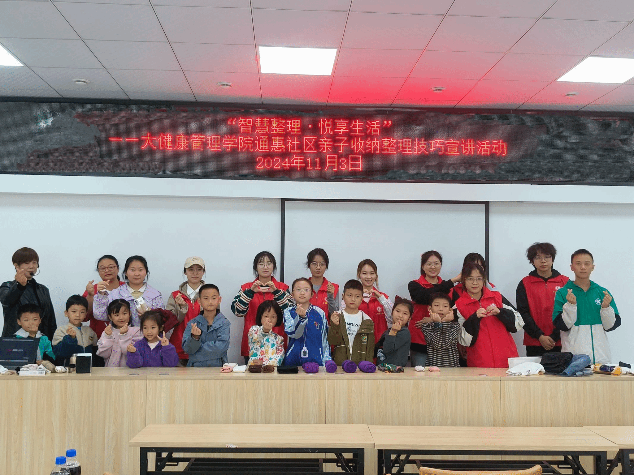 为了培养当代青少年形成独立自主的生活习惯、提升自我管理能力,大健康管理学院青年志愿者协会组织志愿者于11月3日在通惠社区成功举办了以“智慧整理,悦享生活”为主题的亲子收纳整理技巧宣讲活动,为孩子们的成长之路铺设坚实的基石。