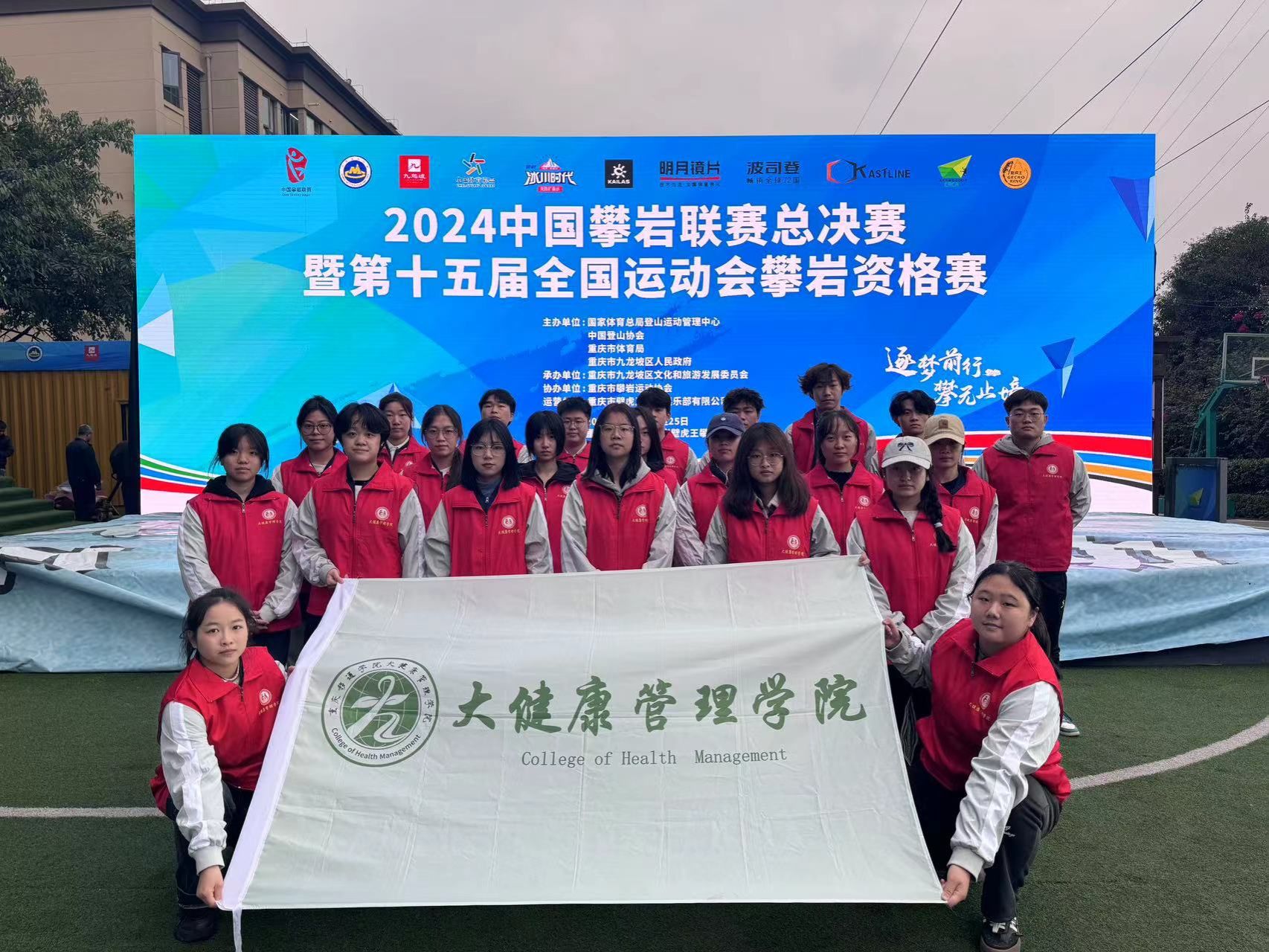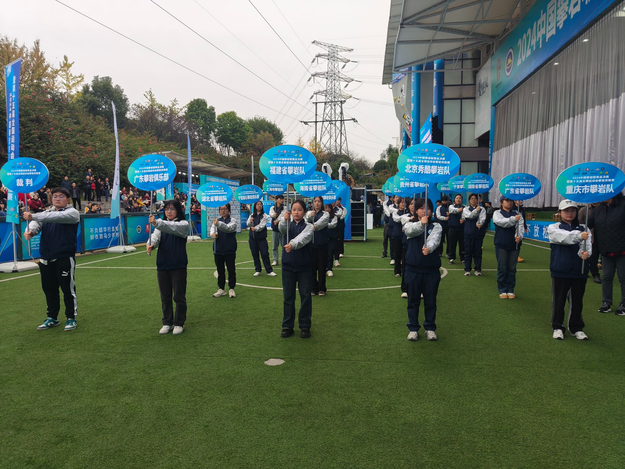 2024中国攀岩联赛总决赛暨第十五届全国运动会攀岩资格赛于11月23日上午9时在重庆市九龙坡重庆华岩壁虎王国家攀岩示范公园盛大开幕。重庆移通学院大健康管理学院积极响应号召,选派25名体育经济与管理专业的优秀学子参与此次赛事的组织和服务工作中为全国攀岩联赛贡献健管力量,并借此机会提升学生的实践能力和综合素质。
