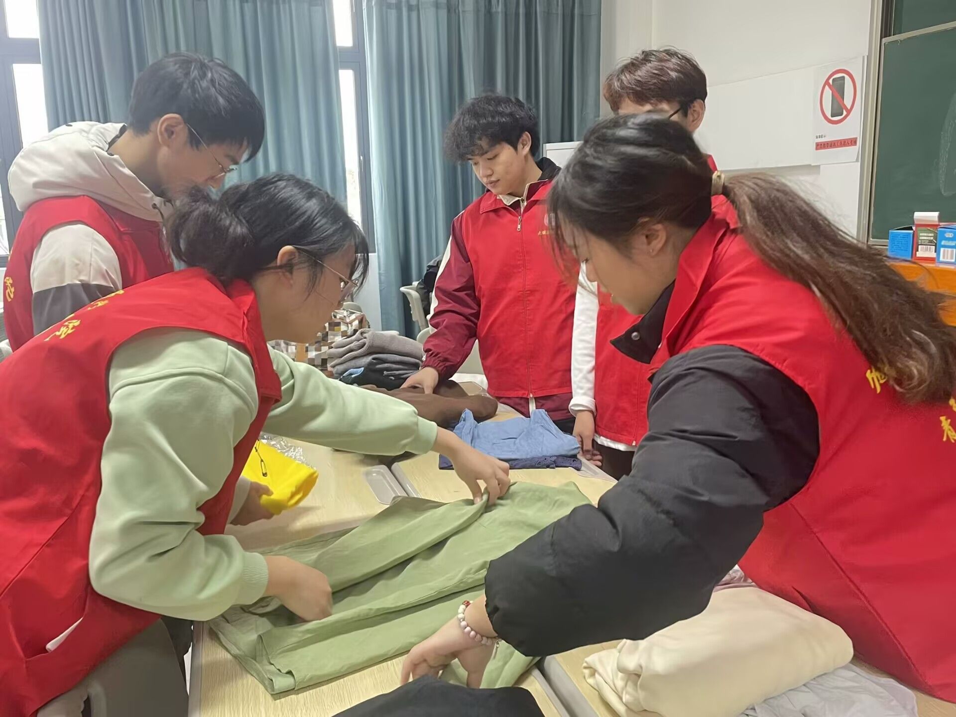 活动前期,青年志愿者协会主要学生干部对志愿者们进行了详细的任务分配,并对衣物、文具等物品的整理与叠放方式进行了标准统一。志愿者们迅速响应,按照标准将不同类型的物品进行初步整理与分拣,随后根据物品的类型进行二次分类,确保每一件捐赠物都能得到妥善处理。在整理过程中,志愿者们严格检查每一件物品,确保它们没有破损或明显污渍,对于不符合要求的物品,则进行了无害化处理。