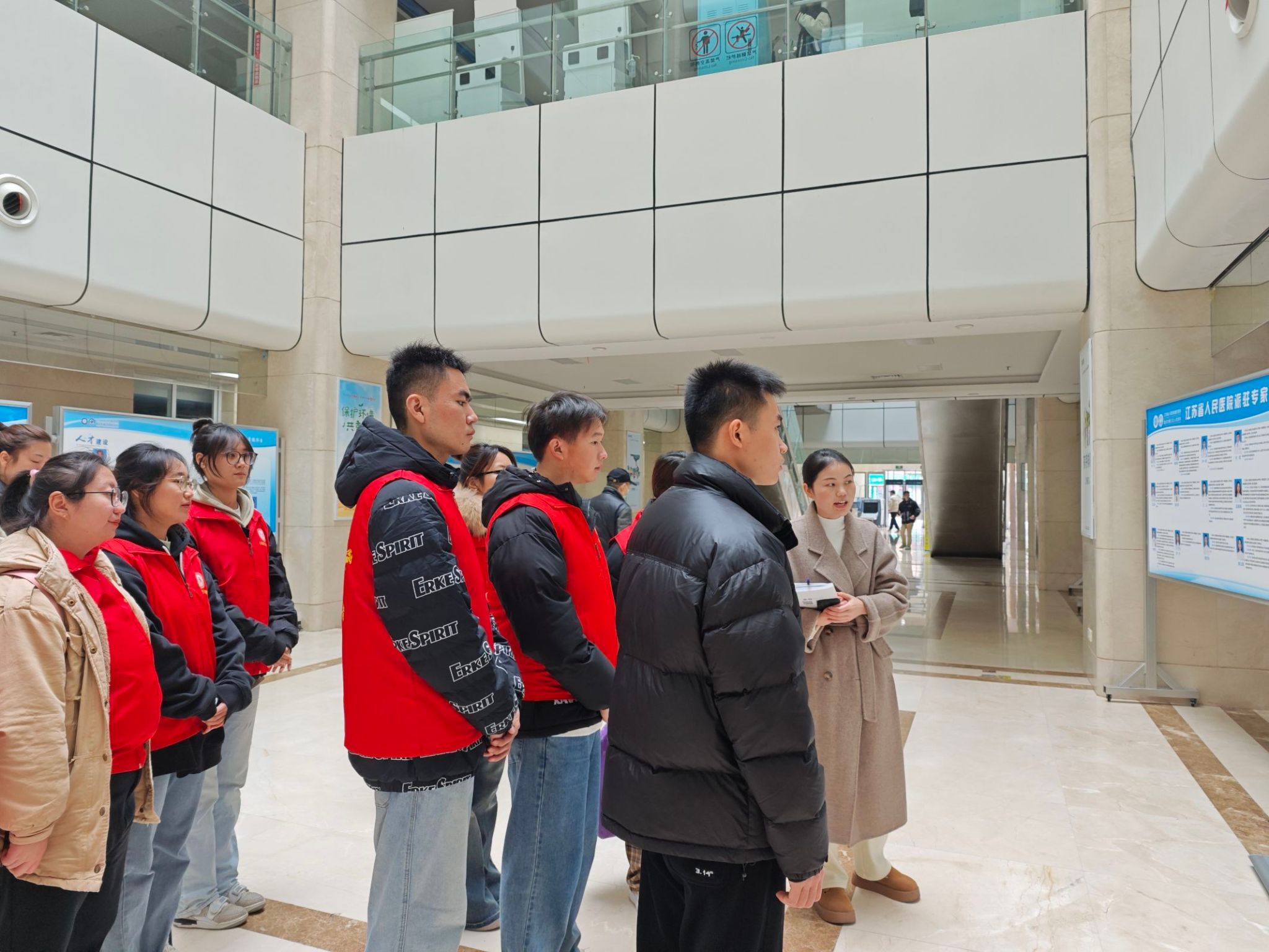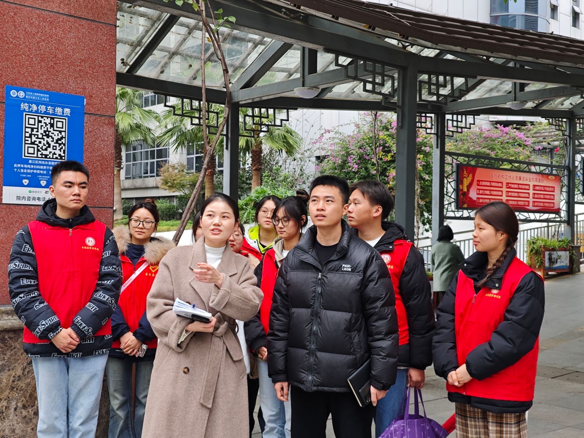活动伊始,志愿者们在医院外科团支部书记傅治霞的引领下参观了院区,傅医生以其专业的知识和热情的态度,向志愿者们详细介绍了从患者挂号到顺利进入各科室接受诊疗、完成各项检查及取药的整个流程。通过傅医生的生动讲解,志愿者们不仅深入了解了医院的科室布局,还对医院的日常运作和就诊流程有了更加清晰的认识和直观的理解。