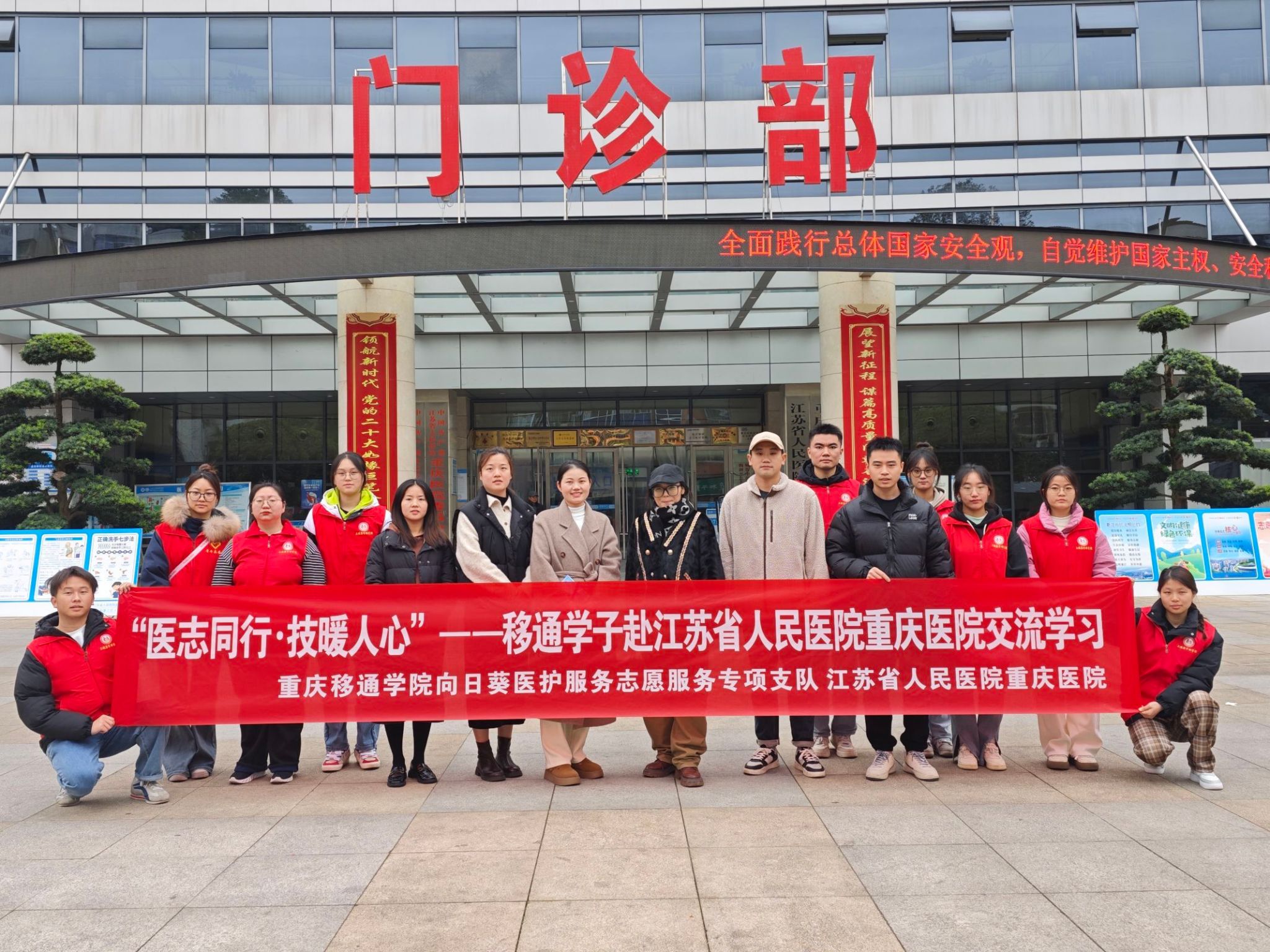 为了进一步深化院校与医疗机构间的紧密联系,加强合作纽带建设,大健康管理学院“向日葵”医护服务志愿服务专项支队于11月29日赴江苏省人民医院重庆医院(重庆市綦江区人民医院)开展以“医愿同行,技暖人心”为主题的医护技能培训交流活动。重庆移通学院大健康管理学院团总支书记彭兰萱、志愿服务板块指导老师周顺航以及10名志愿者共同前往。江苏省人民医院重庆医院(重庆市綦江区人民医院)党委委员、纪检书记邱华忠,组织人事科科长邵妍,宣传统战科科长佘应巧,外科团支部书记傅治霞出席活动。
