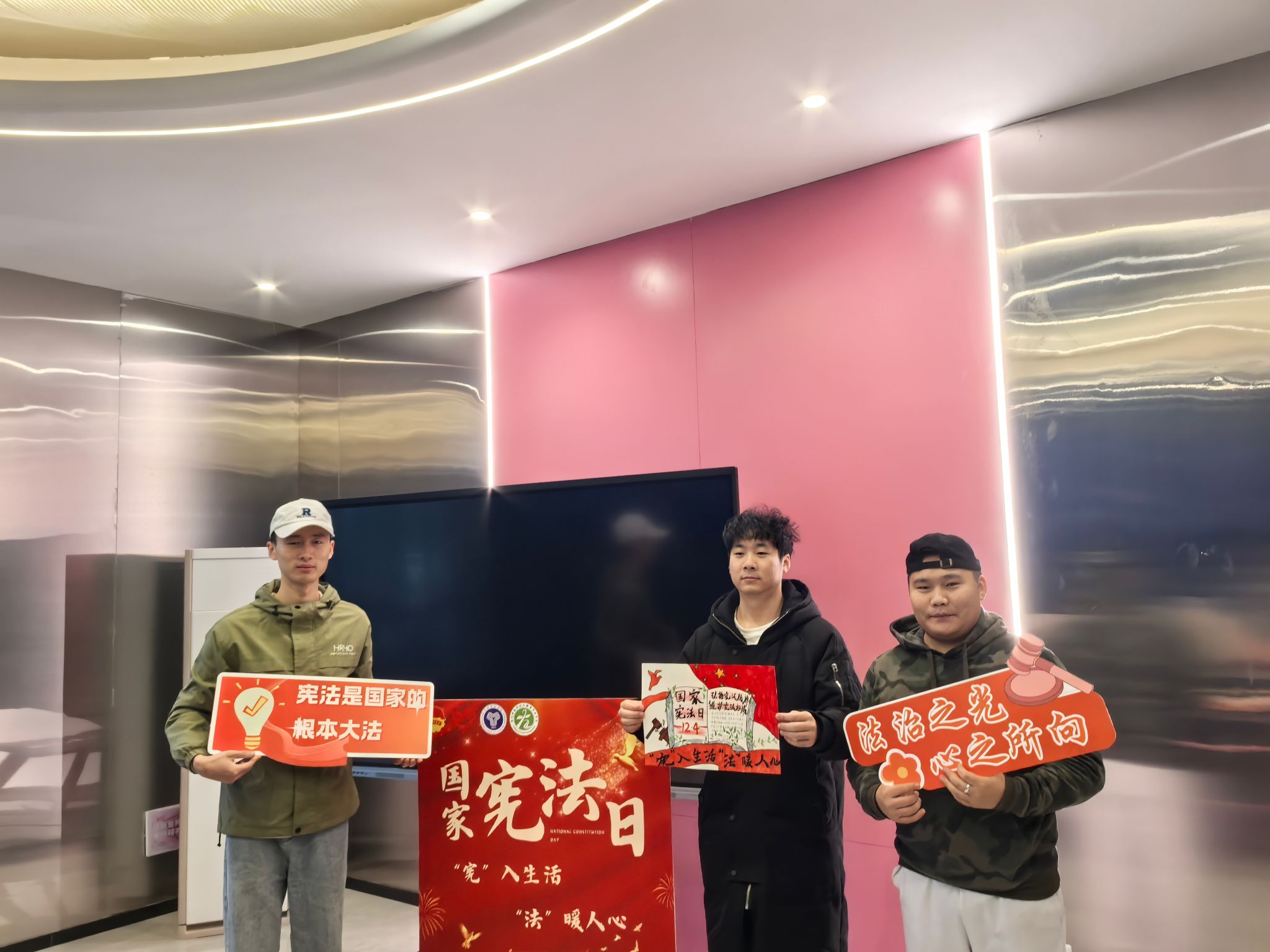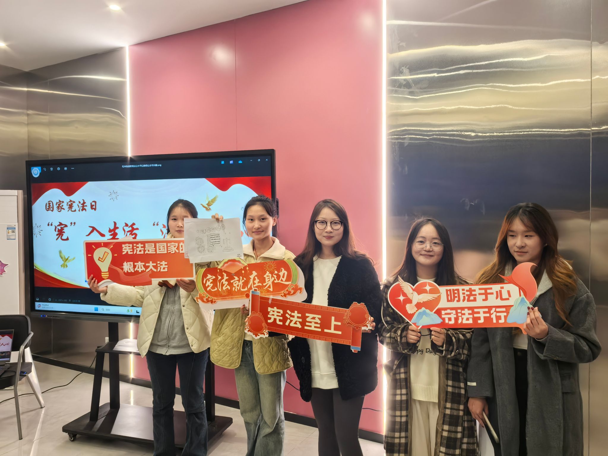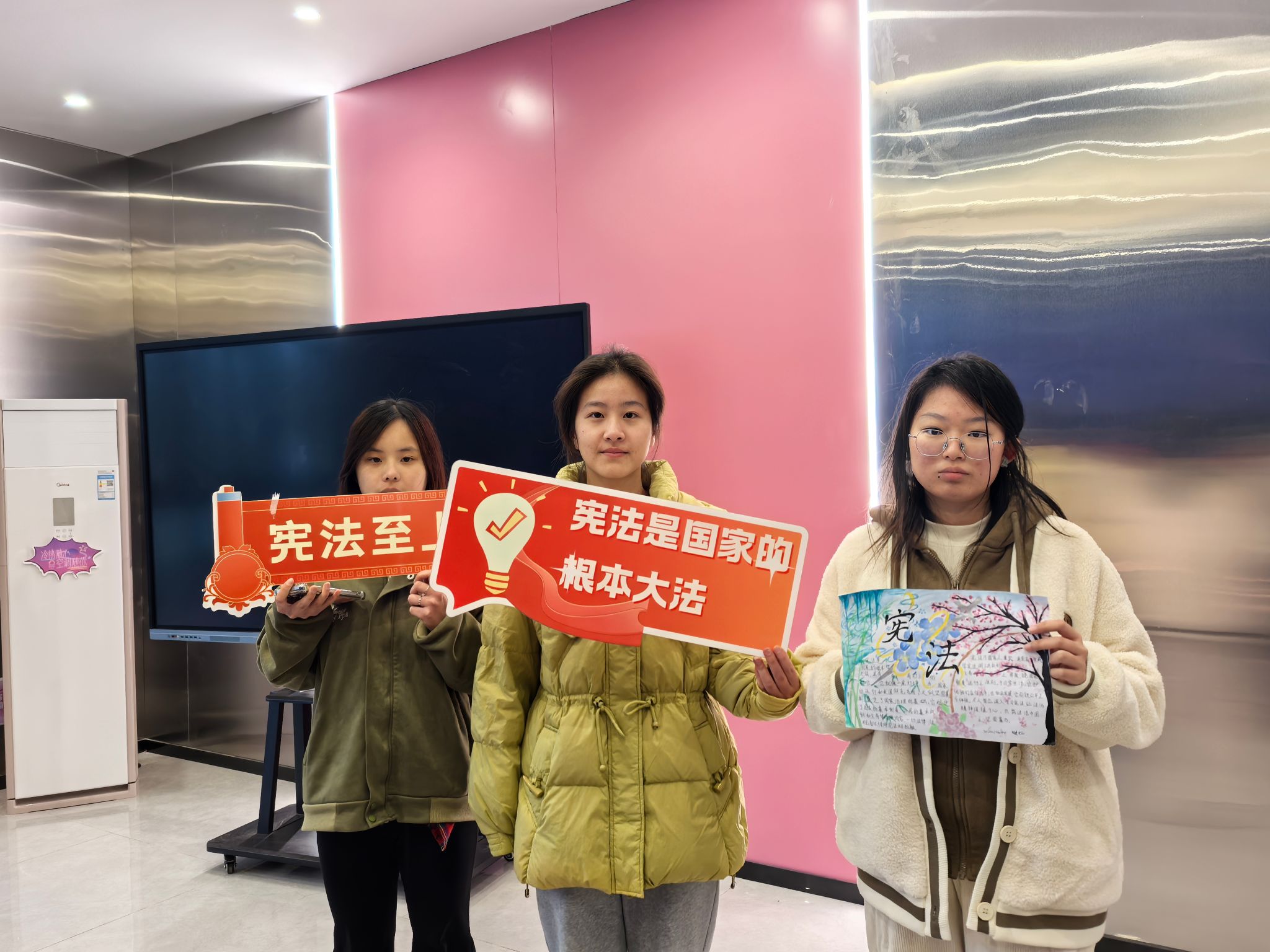 在收集作品的过程中,同学们带着自己精心准备的作品来到现场,他们巧妙地运用图案、图表、漫画等多种元素,将严肃的宪法知识转化为富有吸引力的视觉作品,色彩斑斓的画面、工整有力的字迹、别出心裁的排版,让同学们在欣赏的过程中也能不知不觉地接收到宪法知识。