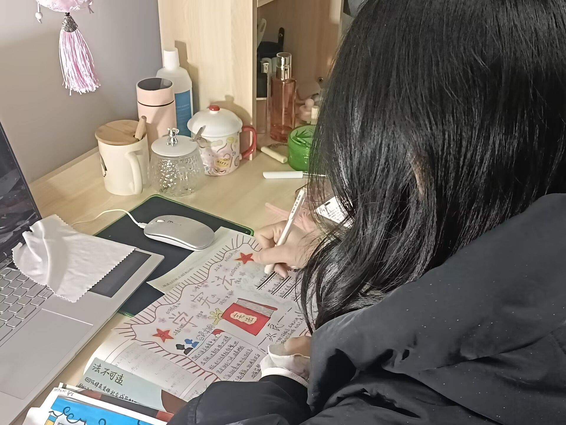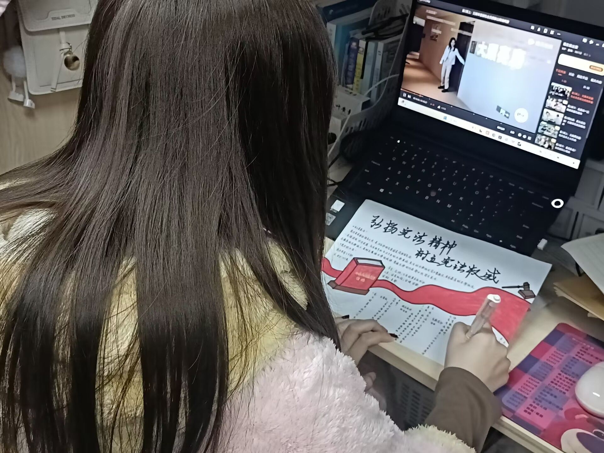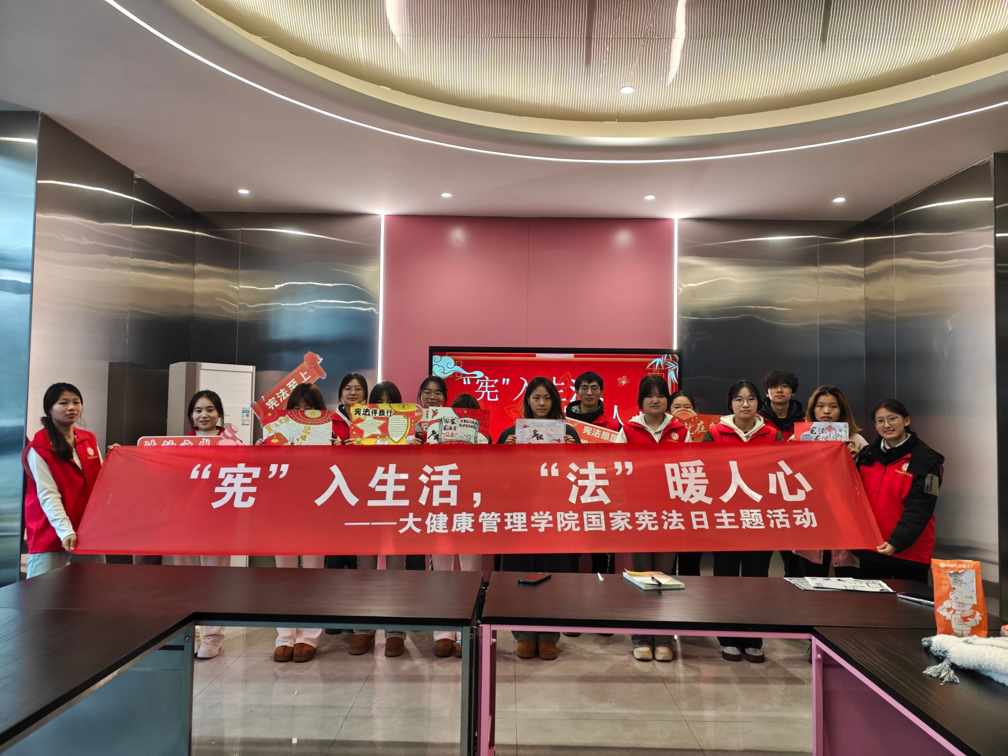 为深入学习宪法,弘扬宪法精神,大健康管理学院青年志愿者协会于12月4日在丁山书院水瓶座·项目共享空间举办了一场以宪法为主题的手抄报征集活动。此次活动吸引了大健康管理学院百余名同学进行参与,他们用手中的画笔描绘出对宪法的理解与尊崇,以独特的创意和视角展现了宪法在日常生活中的重要地位。