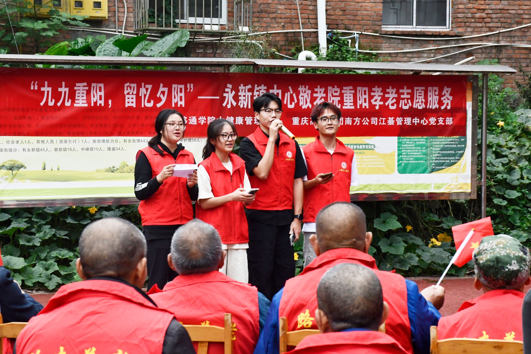 金秋十月,岁岁重阳。在重阳节这个尊老、敬老、爱老、助老的传统佳节里,重庆高速集团南方公司江綦管理中心党支部与大健康管理学院的志愿者们怀揣着拳拳之心与殷殷之情,于10月11日再度走进綦江区永新镇敬老院,开展了一场以“九九重阳·留忆夕阳”为主题的志愿活动,为敬老院的老人们献上了一份温馨而特别的节日贺礼。