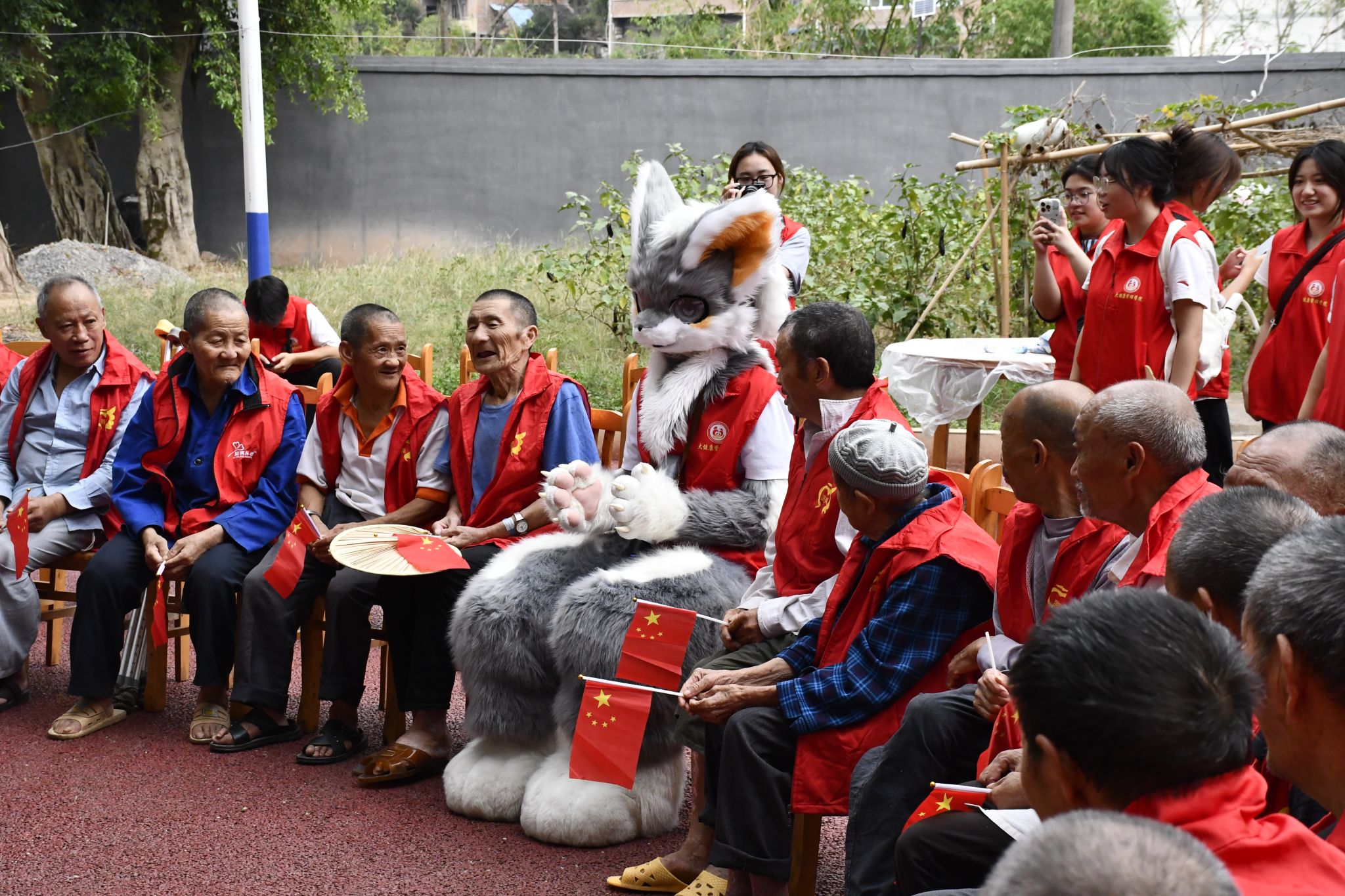 活动前夕,志愿者们便紧锣密鼓地投入到场地布置工作中,志愿者们分工明确,有的忙着布置临时舞台,调整音响设备,确保文艺表演能够顺利进行;有的则摆放桌椅,有序组织相关老人集合,为老人们提供一个最佳的观赏环境。志愿者们还特意准备了小红旗、横幅和“三宝小狼”人偶,将活动现场装点得既温馨又不失活力。在布置过程中,志愿者们还不时地与养老院的工作人员沟通交流,了解老人们的喜好和身体状况,让他们感受到最真挚的关怀。