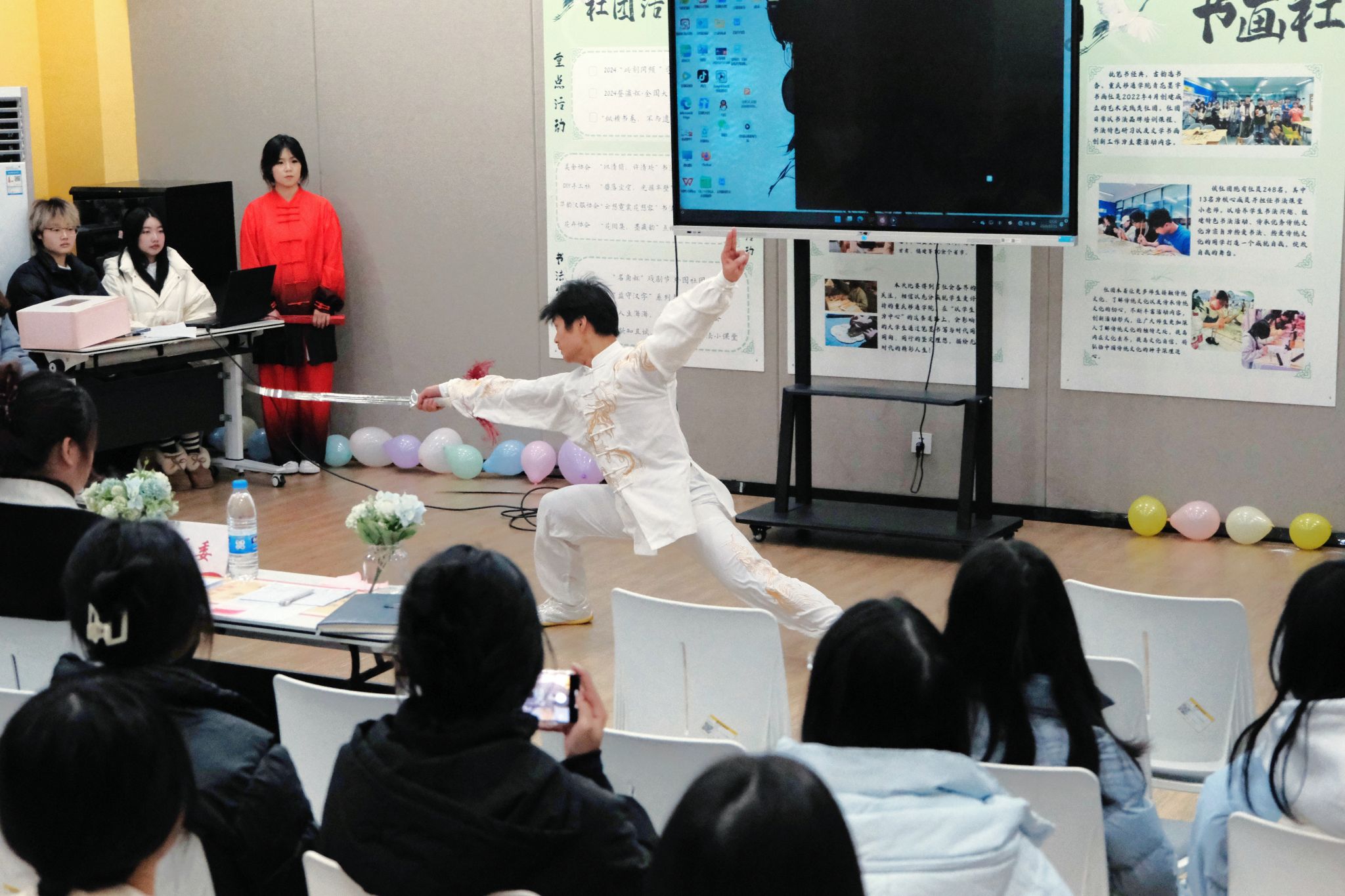 武术队的同学们在精湛的技艺和默契的配合下,展现了传统武术的雄浑与刚劲。通过一系列精彩的拳法、剑术和套路展示,赢得了现场观众的阵阵掌声,也让大家更深刻地感受到中华文化的博大精深与魅力。