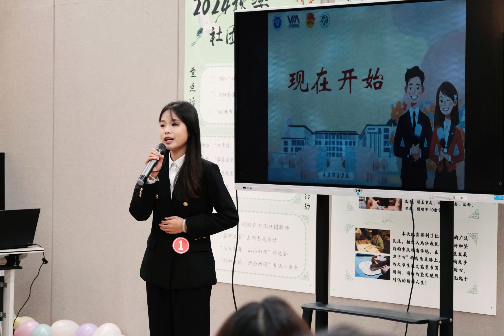 本次大赛的初始环节是选手们的自我介绍。每位选手在1分钟的时间内通过自我介绍展现了自己独特的个性与表达能力。无论是幽默风趣的言辞,还是沉稳大气的风范,选手们都展示了出色的语言表达能力和临场反应能力。每一位选手都以充满自信和激情的演讲,让在场的观众感受到了青春与活力的碰撞。