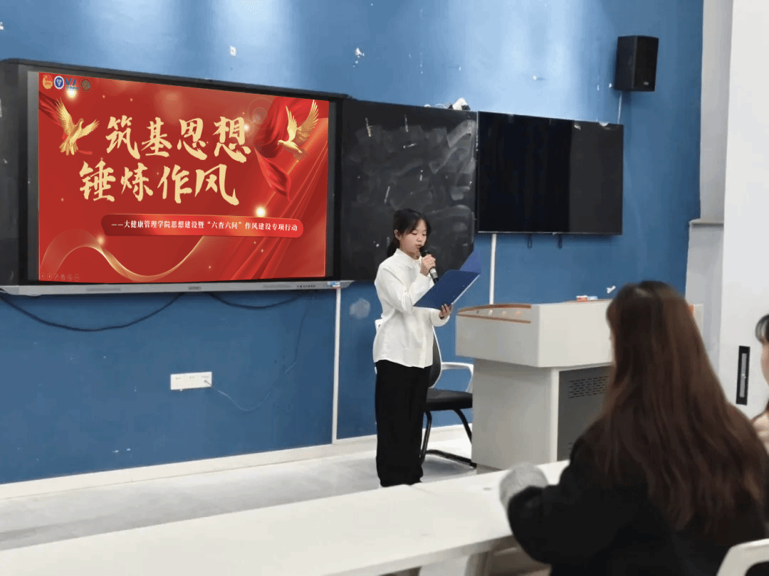 近年来,思想作风建设已成为学院建设的重点工作。为此,我院于11月15日12:30在綦河书院智慧教室“筑基思想·锤炼作风”——大健康管理学院思想建设暨“六查六问”作风建设专项行动。