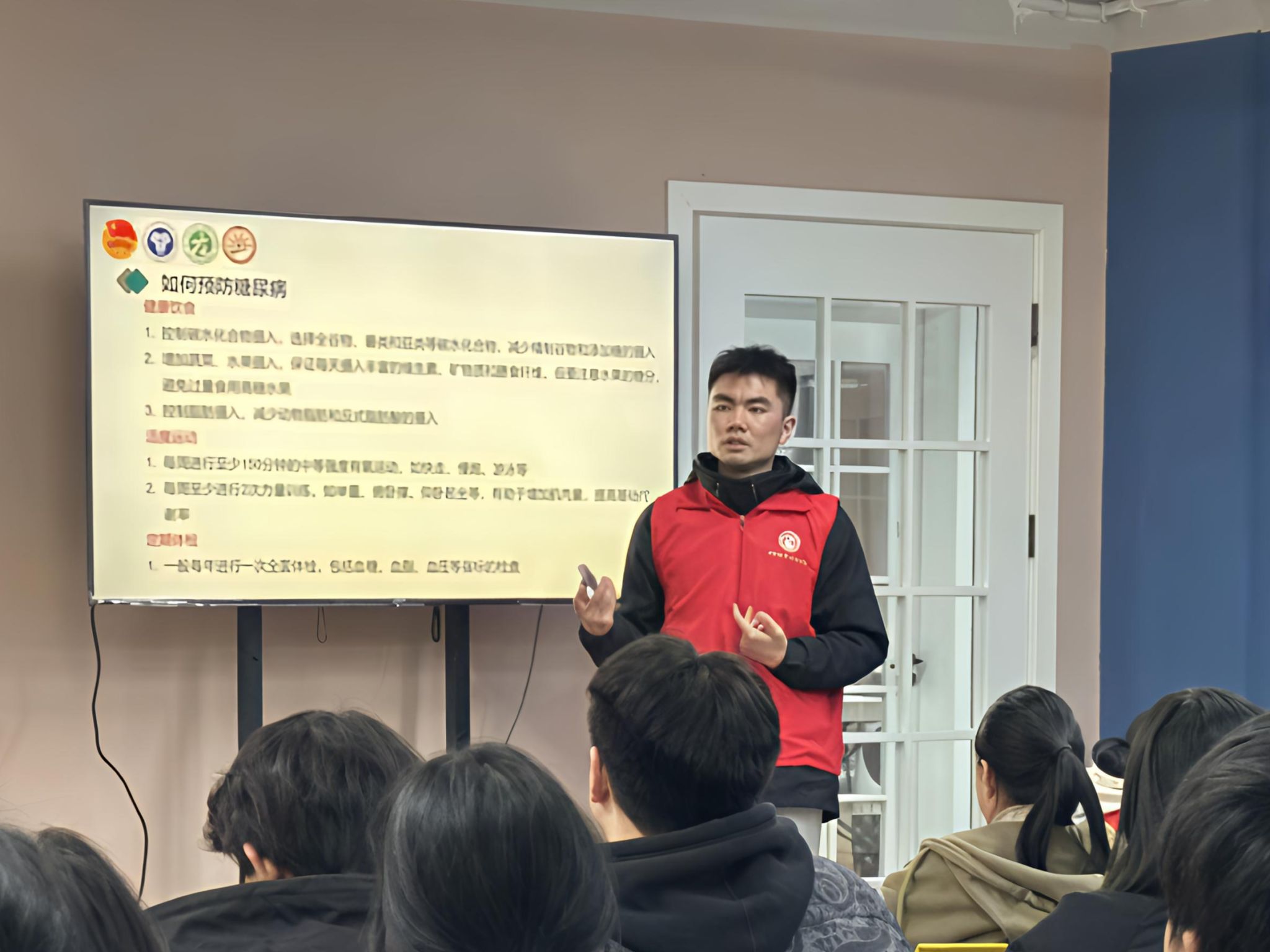 活动现场,志愿者邓睿生动有趣地讲解了血压、血糖的基本概念、正常范围、影响因素以及高血压、高血糖的危害和预防方法,同时详细介绍血压仪、血糖仪的操作方法。针对大学生群体常见的久坐熬夜、饮食不规律等问题,他还提出了合理饮食、适量运动、戒烟限酒、保持良好的心态等健康建议,引导参与者们树立正确的健康观念。不少同学表示,通过此次科普,学到了很多实用的健康知识,深刻认识到了保持血压、血糖稳定的重要性。