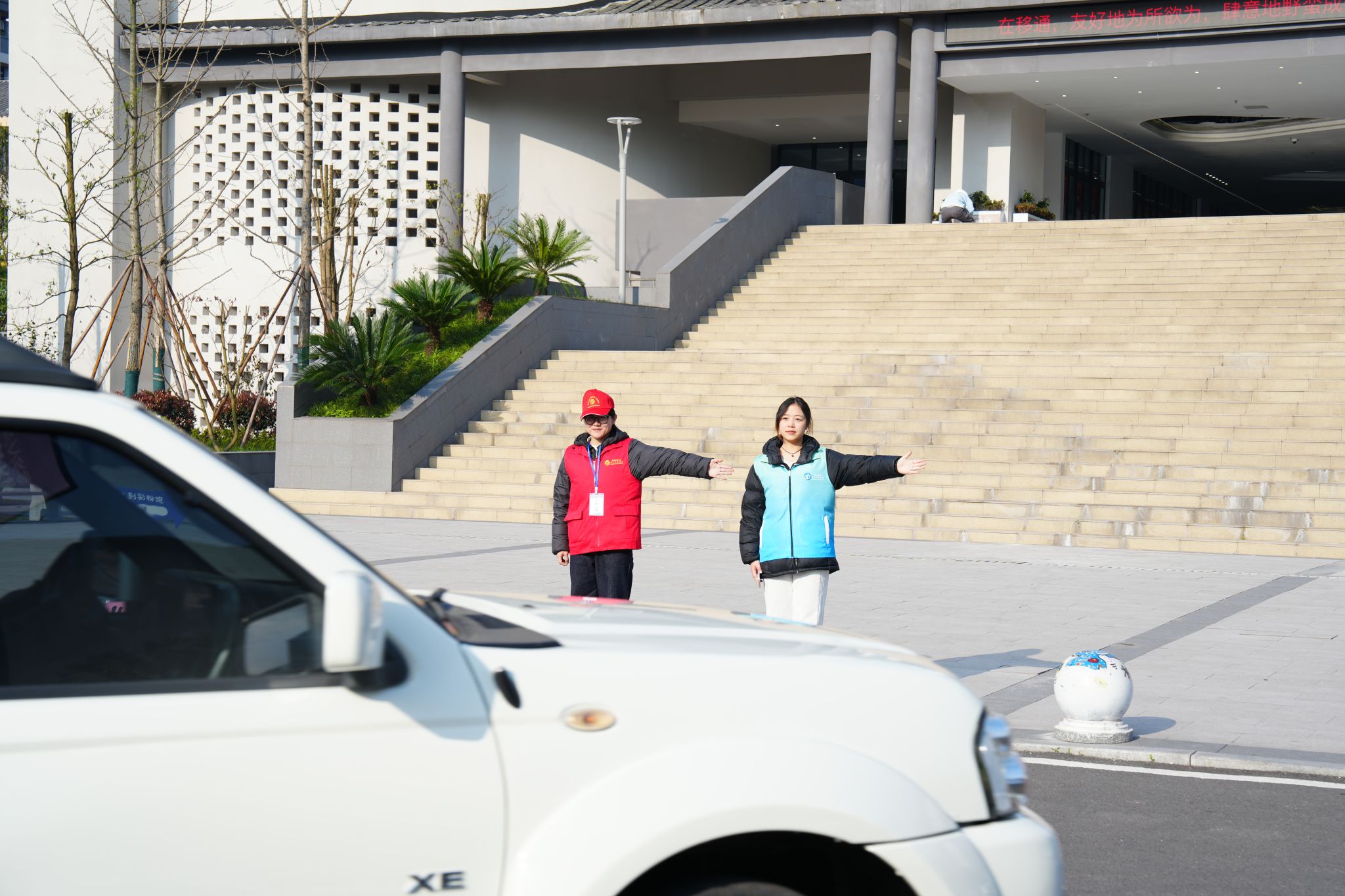 晨光初露,志愿者们已身披马甲在校区入口和沿途道路就位,以饱满的热情和负责的态度迎接每一位前来参加活动的嘉宾和同学。他们耐心地为同学们指引方向,解答疑问,引导大家有序入场,用青春笑颜和专业素养架起活动“暖心桥”。在志愿者们的引导下,现场秩序井然,为活动的顺利开展奠定了基础。