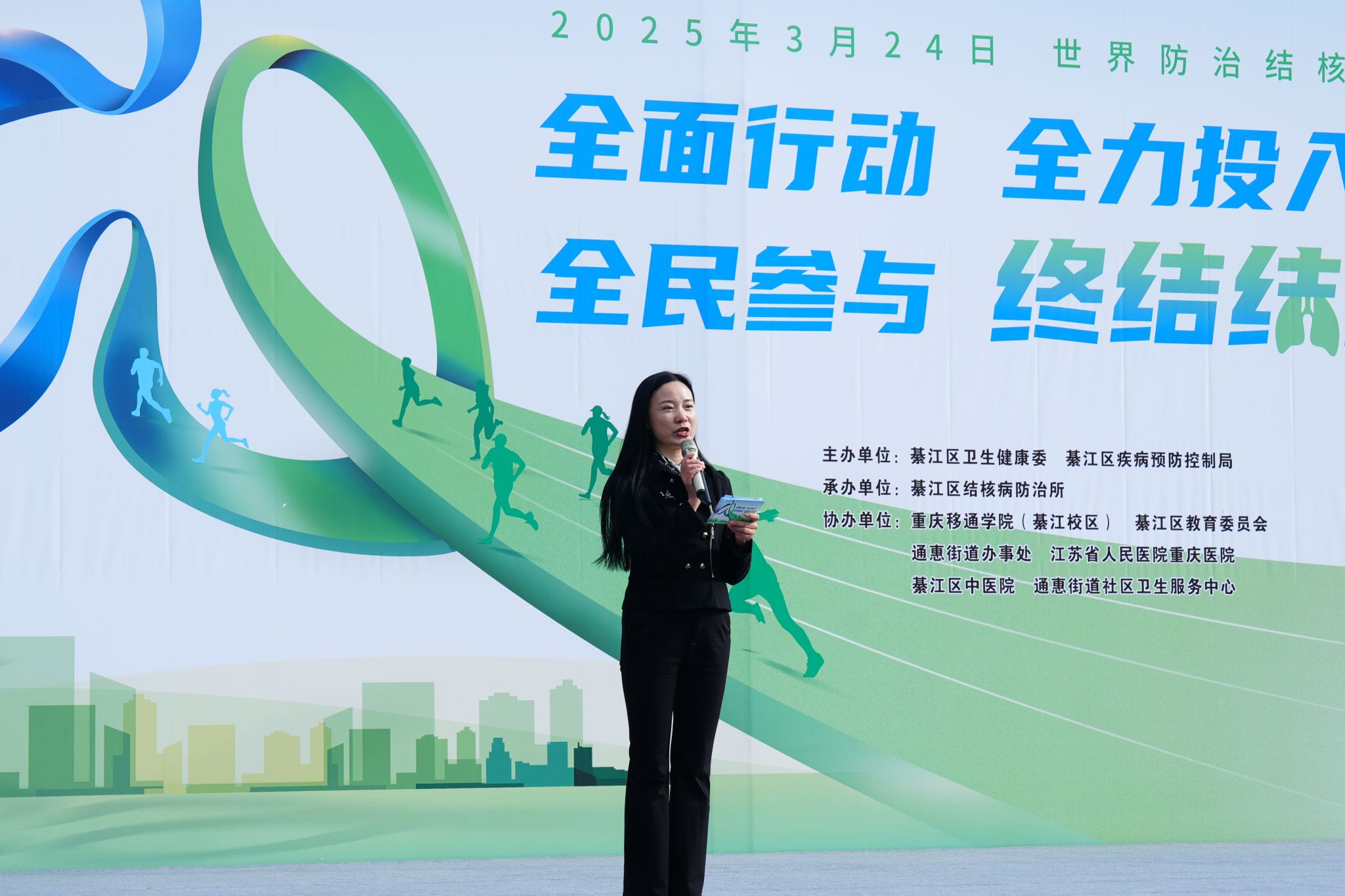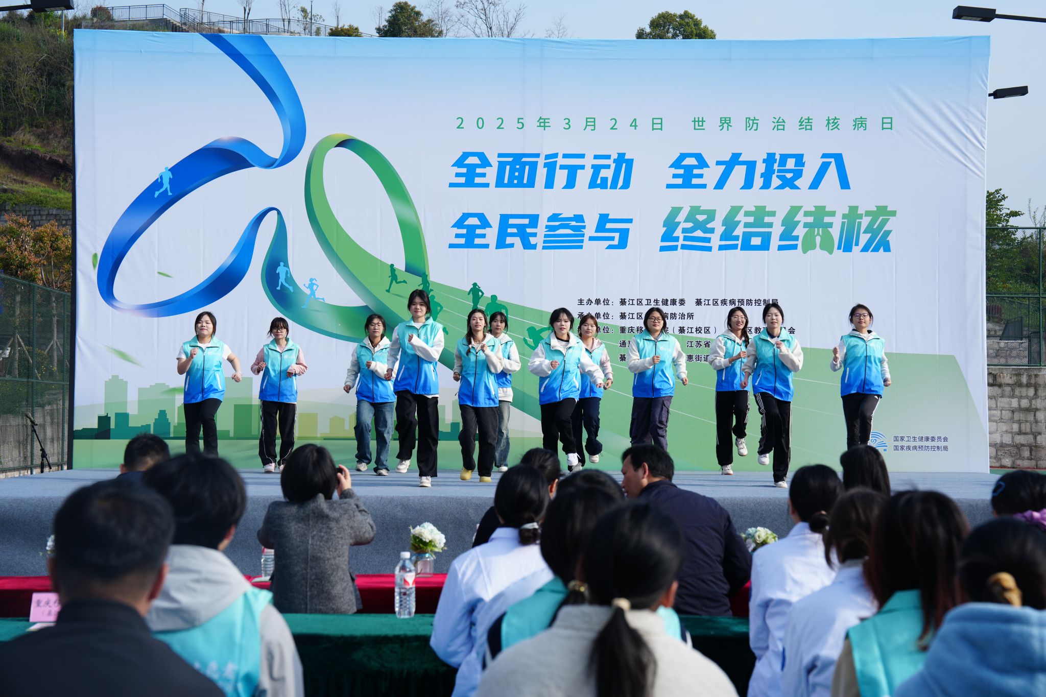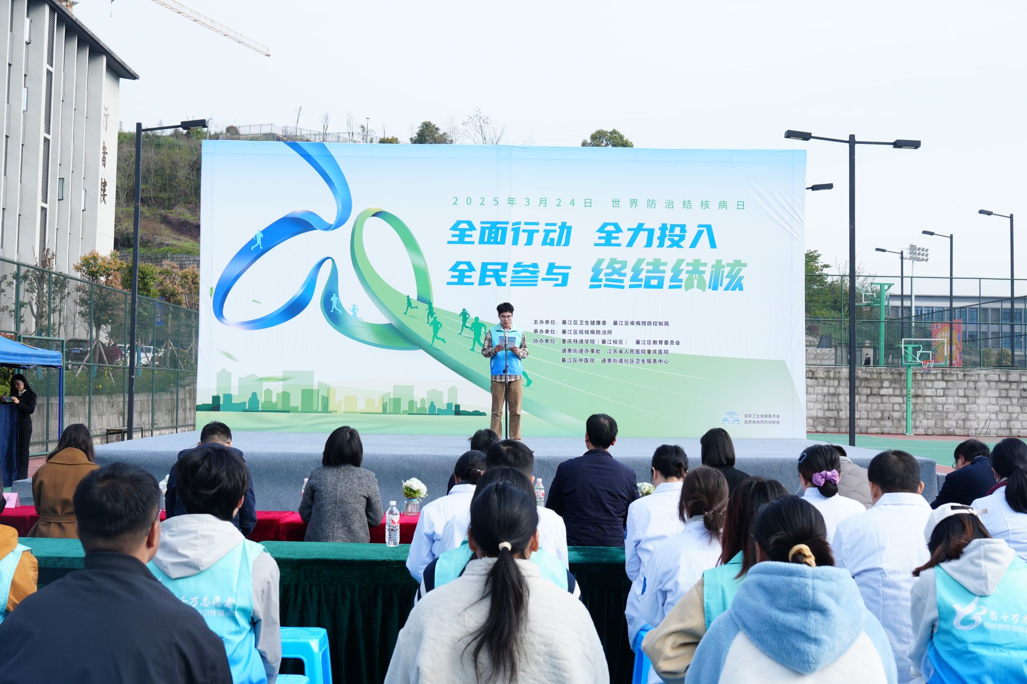 在第30个“世界防治结核病日”之际,重庆市綦江区结核病防治所联合大健康管理学院于3月20日走进高校,在重庆移通学院綦江校区开展结核病防治主题宣教活动。活动通过“理论科普+实践指导”的多维模式,为千余名师生筑起健康防护网。綦江区卫生健康委、疾病预防控制局等卫生主管部门代表以及重庆移通学院校长助理谢银平、学生处副处长唐尚静、团委副书记蔡星宇、大健康管理学院院长杨瑜、学工办主任童学容共同出席启动仪式。