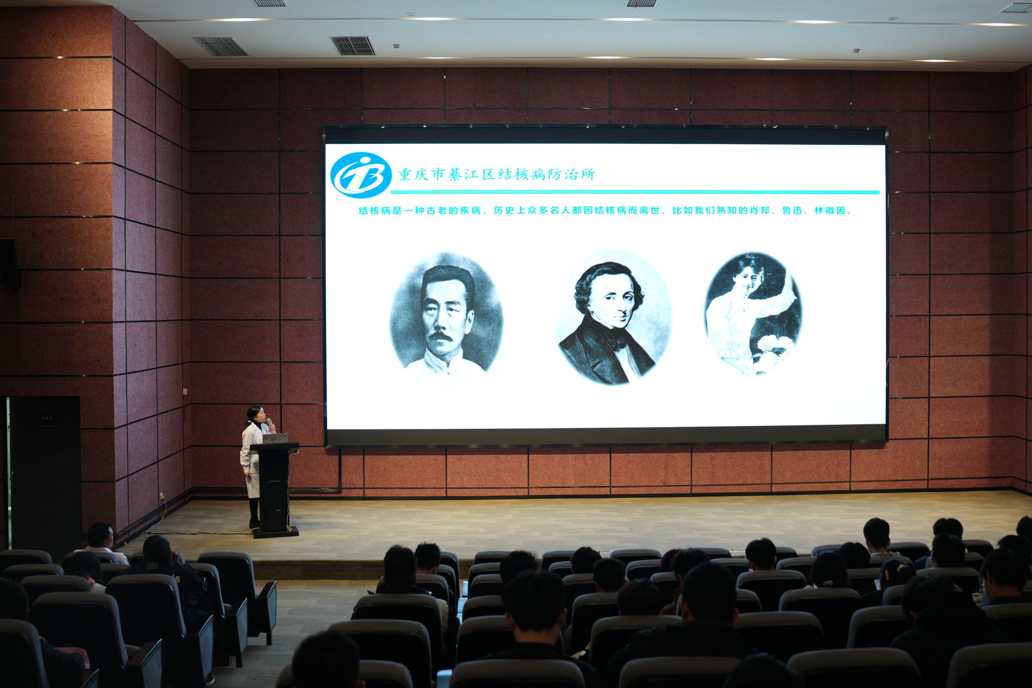 綦江区结核病防治所杨晓勤医生结合《中国学校结核病防控指南》,系统讲解了结核病的定义、典型症状(如持续咳嗽、发热等)、传播途径及防控措施。她指出,早发现、早诊断、早治疗是阻断结核病传播的关键,师生需提高警惕,养成良好卫生习惯。