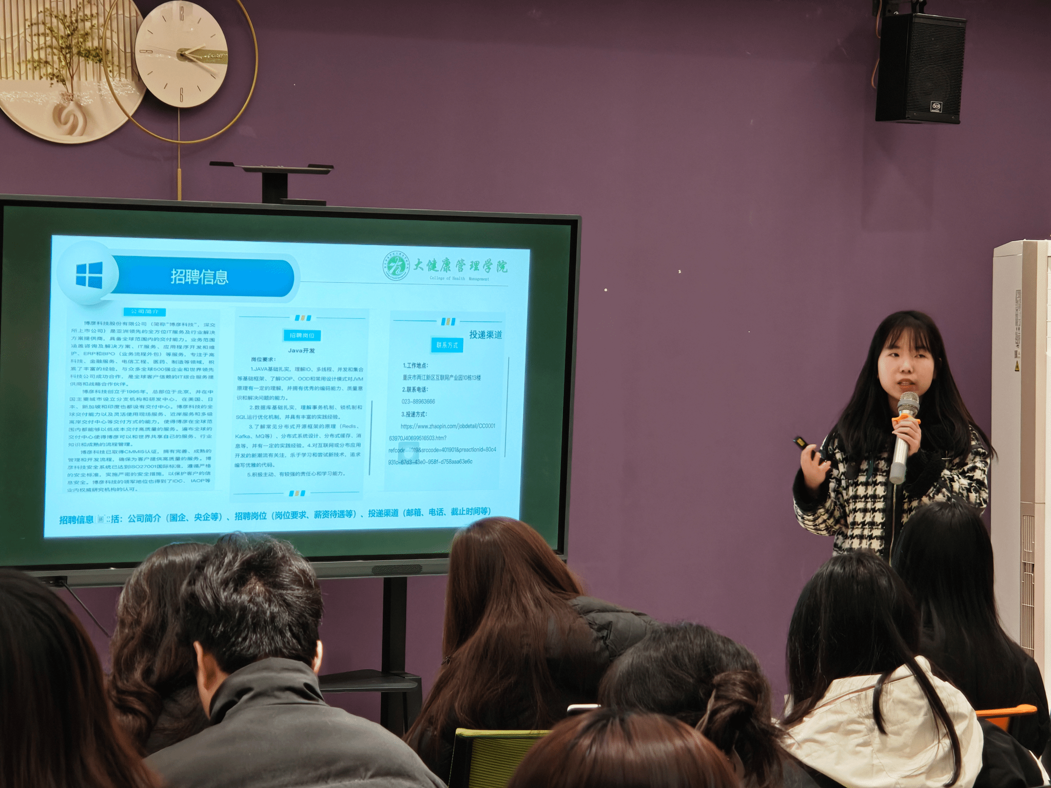 为应对当前严峻的就业形势,进一步提升学生就业竞争力,大健康管理学院于3月19日于观云书院芒种•华文书吧(阅读区)成功举办了2026届就业委员专题培训会,围绕岗位定位、岗位职责等多个方面展开,旨在帮助学生明确职业方向,提升就业能力,为未来的职业发展奠定坚实基础。此次会议2026届毕业班辅导员和全体就业委员共同参与,大健康管理学院就业创业指导老师邱璐主讲。