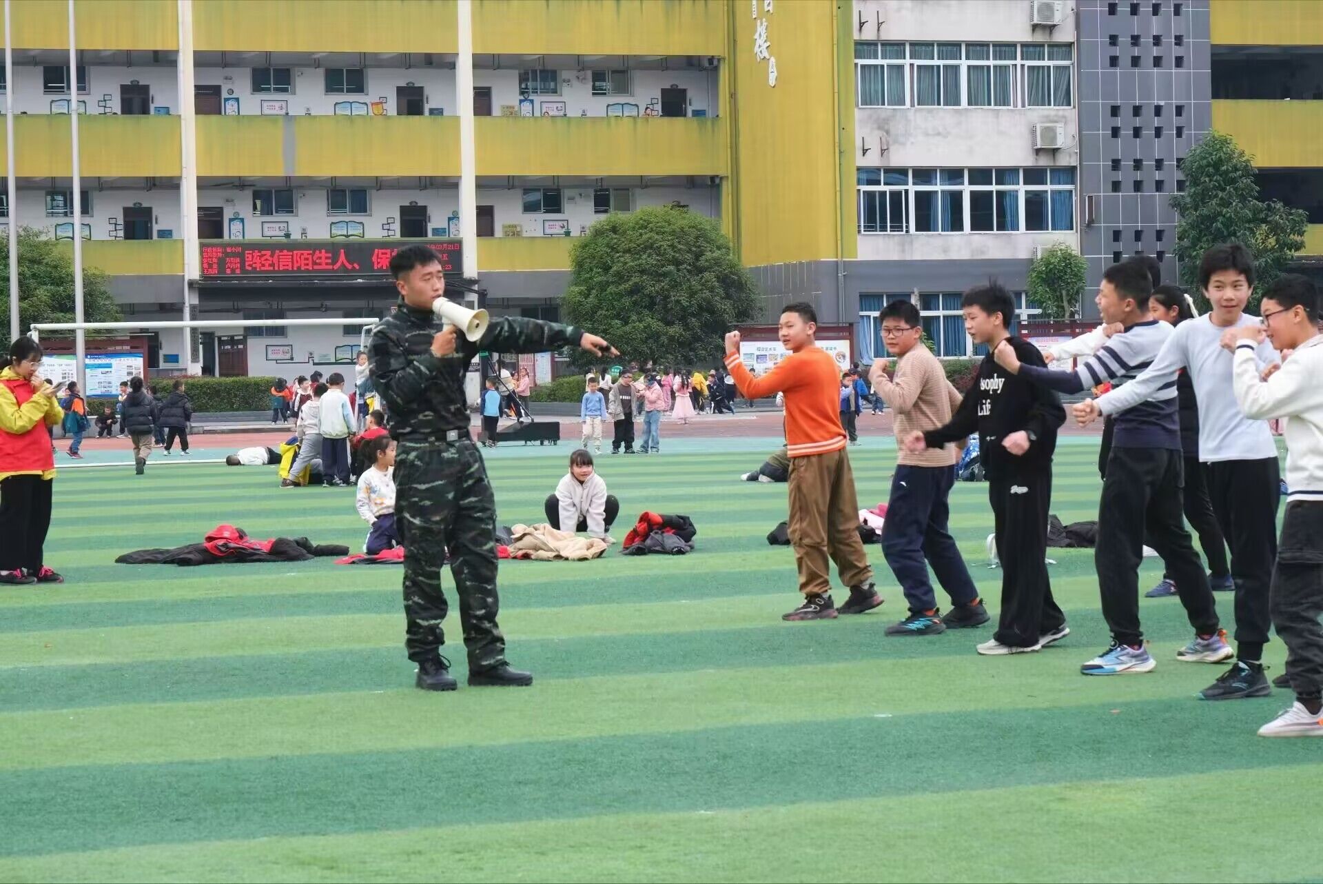 当5名退伍军人组成的示范方阵在操场展开军体拳表演时,现场瞬间沸腾。“杀!”随着震天口号,武警部队出身的王宇航、余鹏等展示了“贯耳冲击”“侧踹横踢”等实战动作,拳风所至虎虎生威。六年级学生李嘉阳对志愿者们说道:“原来军体拳不是表演,而是保家卫国的真功夫!”