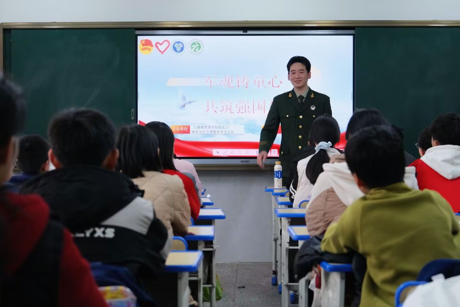 在全国第62个“学雷锋活动月”期间,大健康管理学院股肱力体育文化志愿服务支队联合通惠小学,于3月21日创新开展“兵哥入校传军艺,萌童练拳铸武魂”国防教育实践活动。活动以“军体拳教学+国防文化浸润”为主线,通过沉浸式体验让70余名师生在“学、练、悟”中感受国防魅力,将雷锋精神与强军信念厚植于少年心田。