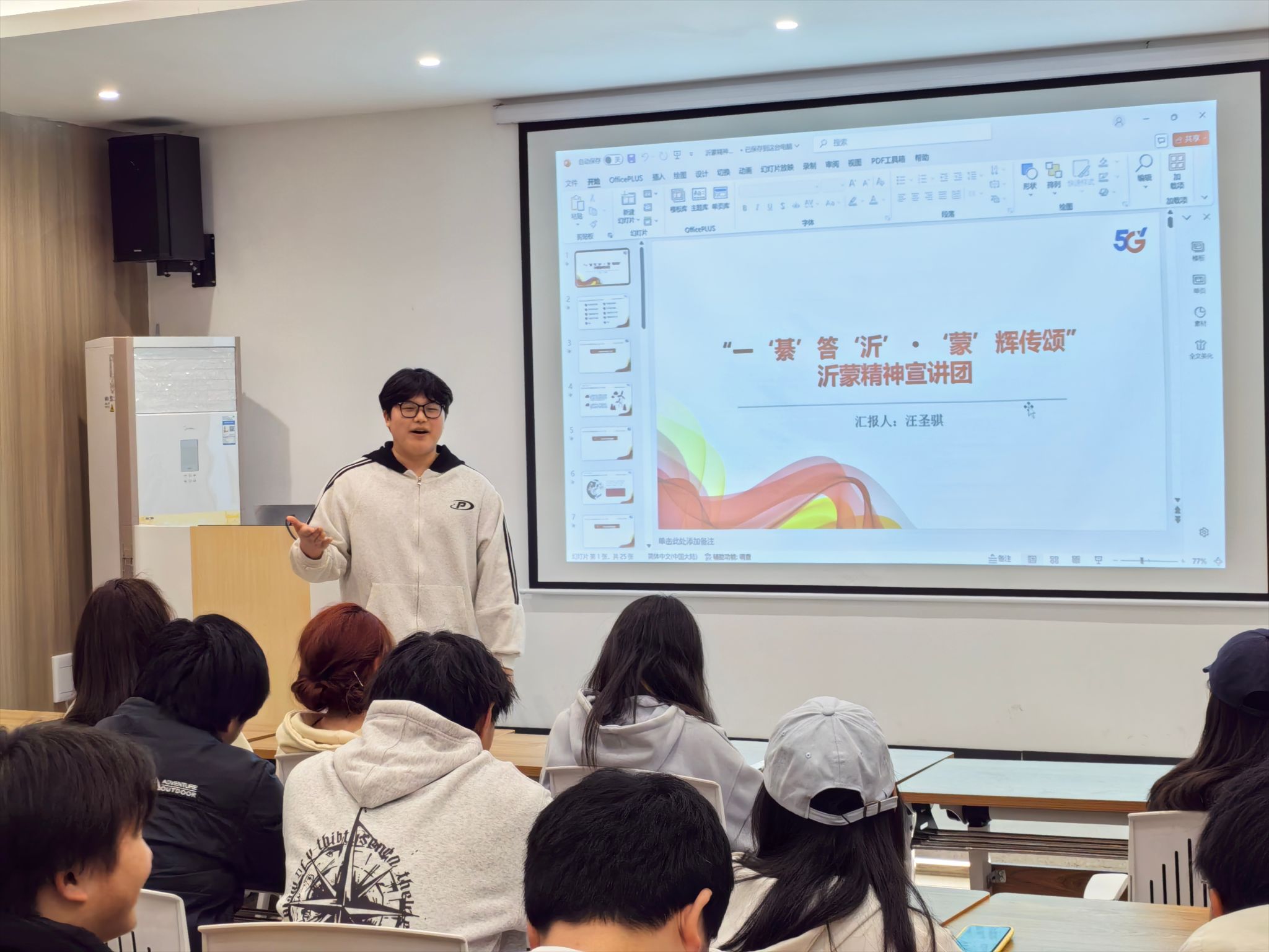 巍巍蒙山,镌刻着红色基因;滔滔沂水,流淌着革命情怀。2025年3月23日,大健康管理学院一“綦”答“沂”·“蒙”辉传颂宣讲团成员汪圣骐、峗庆帝于南江书院审问·启迪思维功能室以“沂蒙精神的时代回响”为主题,为八十余名志愿者呈现了一场沉浸式的沂蒙精神宣讲。通过影像重现、情景讲述与互动研讨,两位主讲人从历史脉络、精神内核与现代实践三个维度,系统诠释了沂蒙精神的磅礴力量,激励青年学子将红色基因融入专业使命,在新时代续写“水乳交融、生死与共”的壮丽篇章。