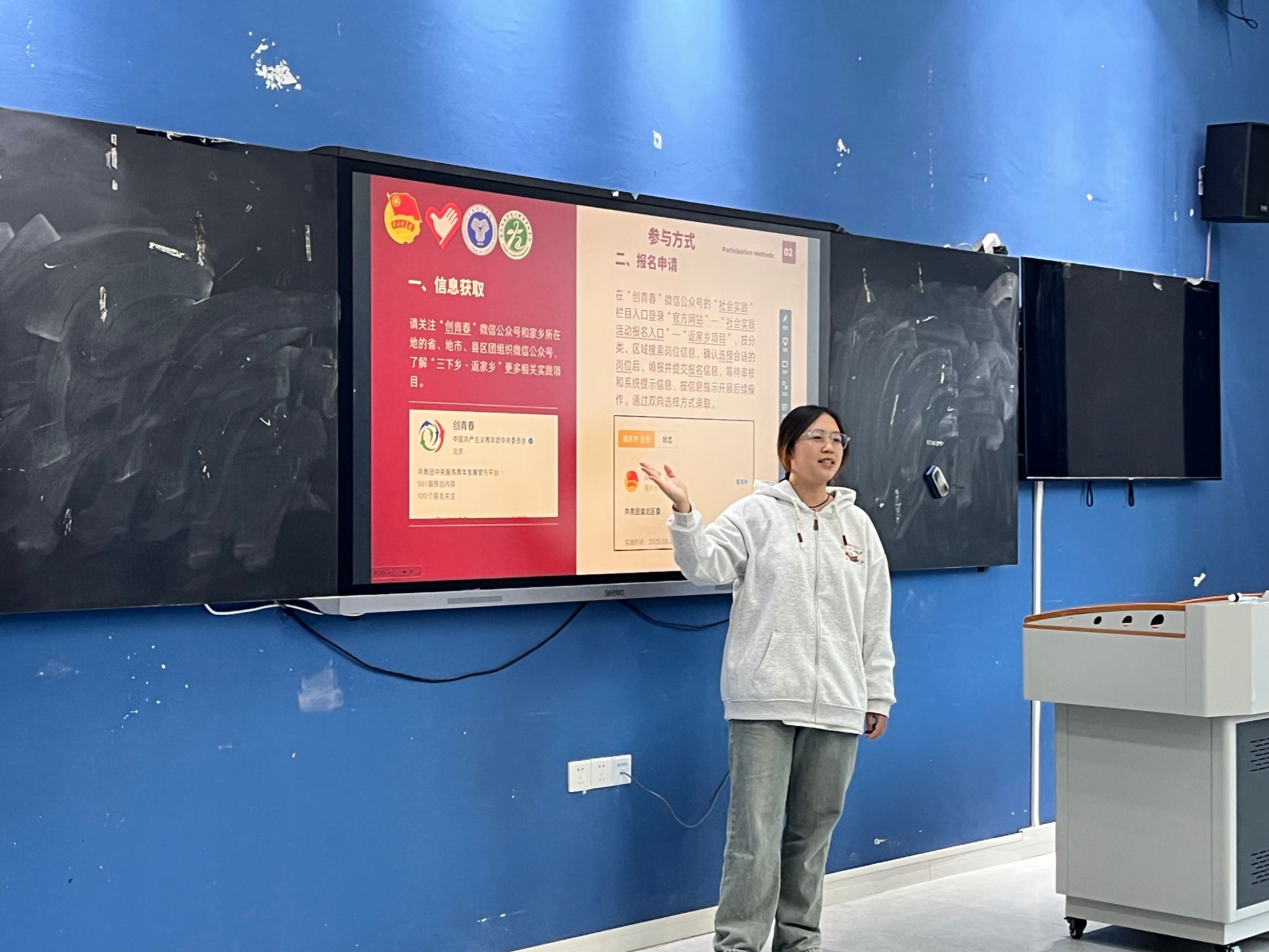成果分享结束后,田常青同学跟志愿者们讲解了如何报名参加“返家乡”活动——志愿者们在“创青春”微信公众号的“社会实践”栏目入口登录官方网站,搜索合适岗位并提交报名信息,经过双向选择录取。在工作期间,田常青同学记录孩子们的成长,将实践日记及体会撰写成文案,并制作短视频进行分享交流,激励志愿者们积极投入“返家乡”队伍,建设美丽家乡。
