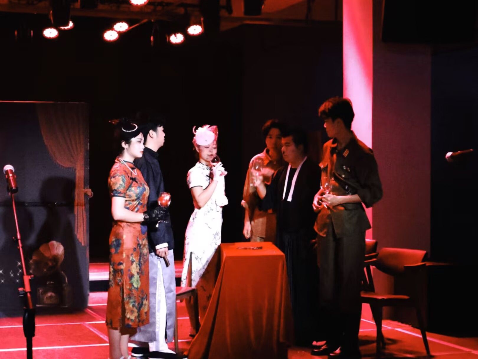 那些发光的瞬间永远定格在记忆里,男生们扛着三米布景在烈日中奔跑,女生们为所有演员做精致妆发,灯光音效组为半秒音效差反复校准的侧脸被荧光照亮。一个具体的事物是锁不住往事的,也许当敏姐整理桌面文件时鼠标会滑到“《谍海沉浮》剧本(最终版)”写着上次编辑的日期;也许烙铁上还残留着森秀树的呵气,把手的指纹层叠成二十双手不同温度下的紧张;也许打开音响,《夜上海》突然流淌;也许瞥见衣架上的白T恤,差点以为是雅子未及换下的白大褂。