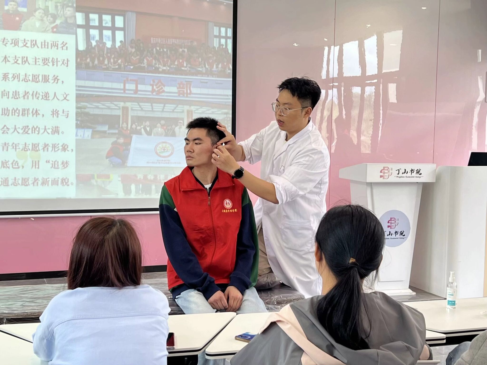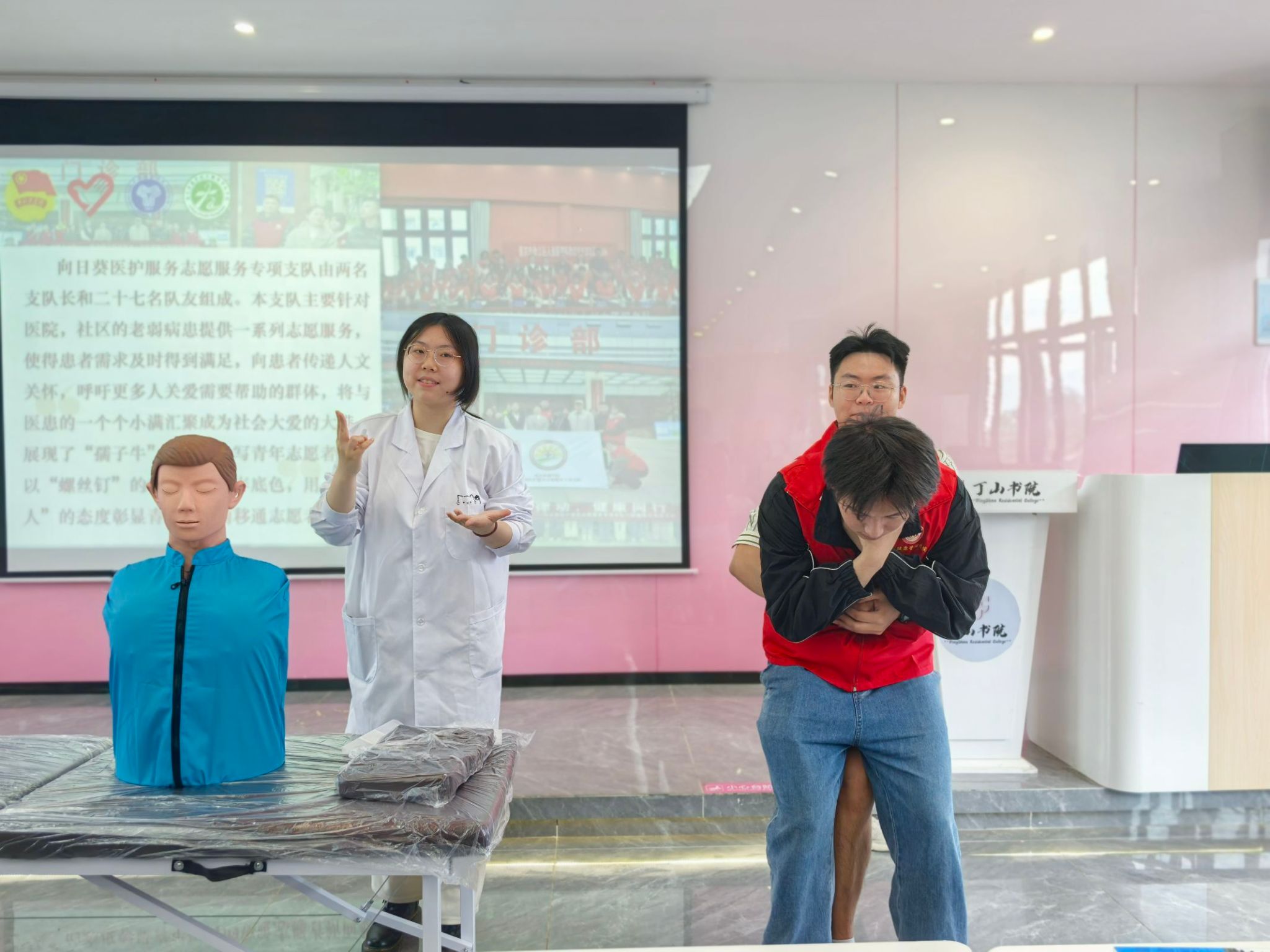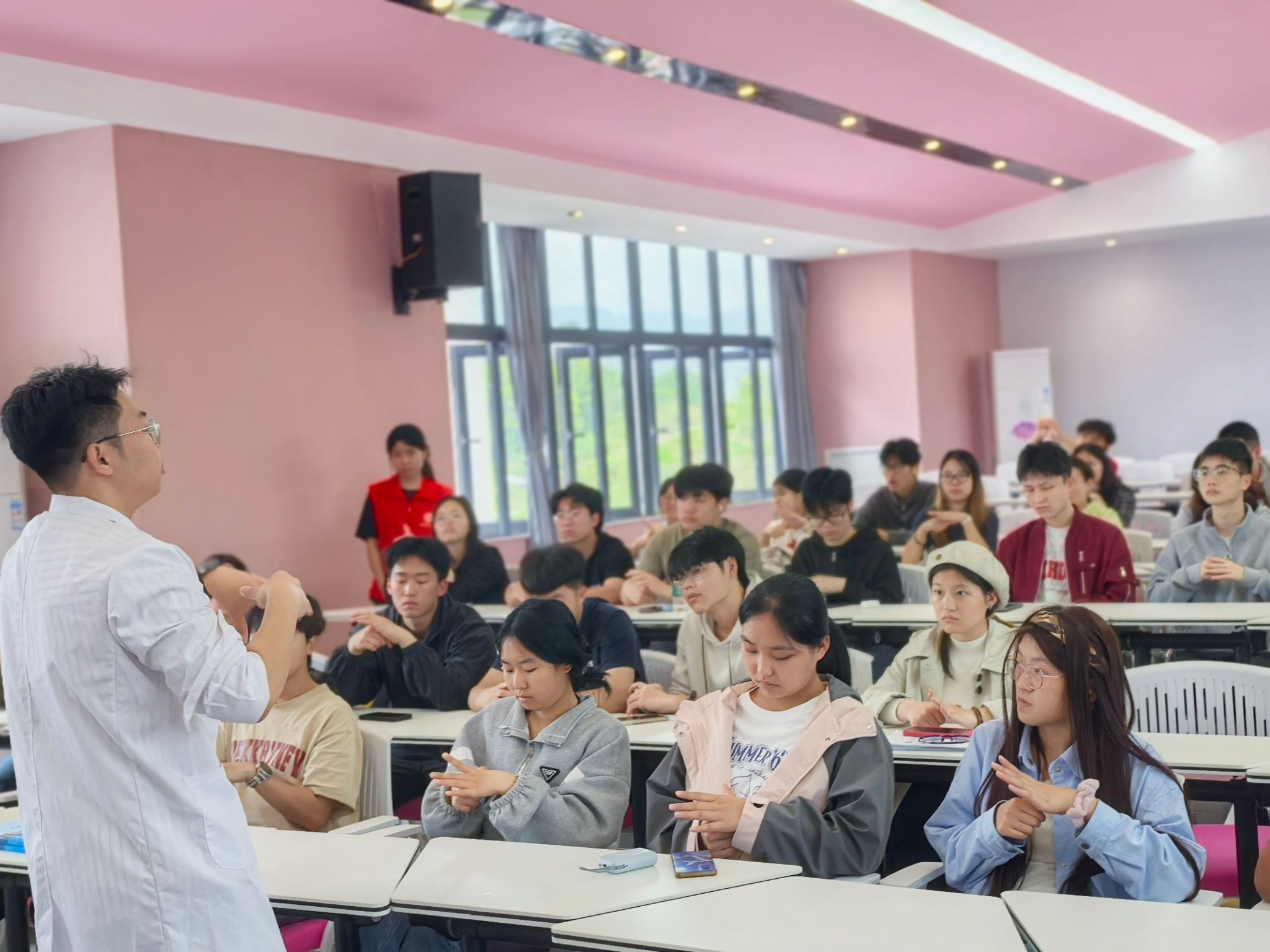 大健康管理学院向日葵医护服务志愿队服务支队主办的“给生命‘开绿灯’”急救技能宣讲培训于4月23日在丁山书院天蝎座·多功能教室成功举办。来自大健康管理学院、信息安全学院、数字经济与信息管理学院的同学齐聚一堂,共同学习应急救护知识与技能,为生命安全筑牢防线。