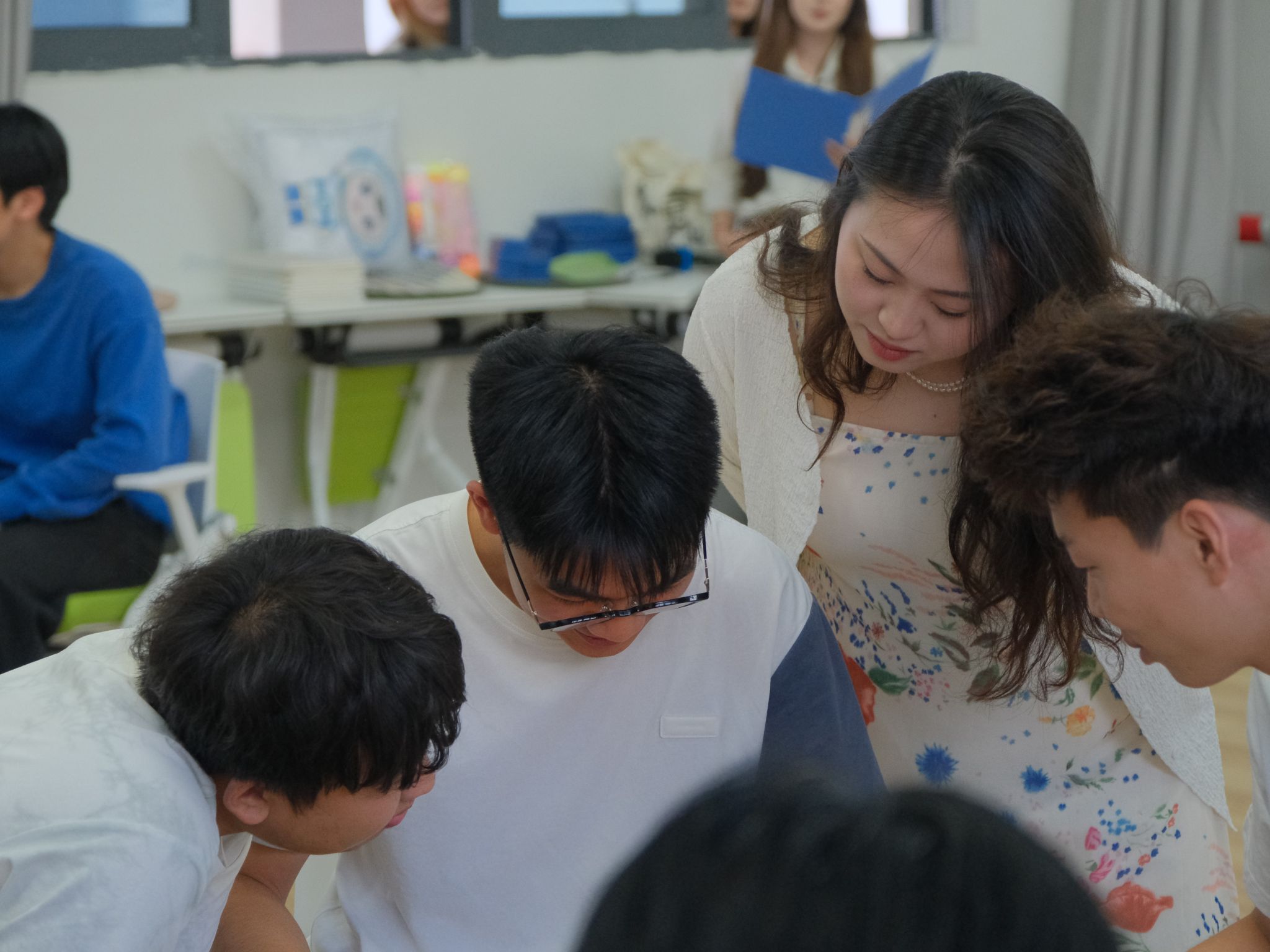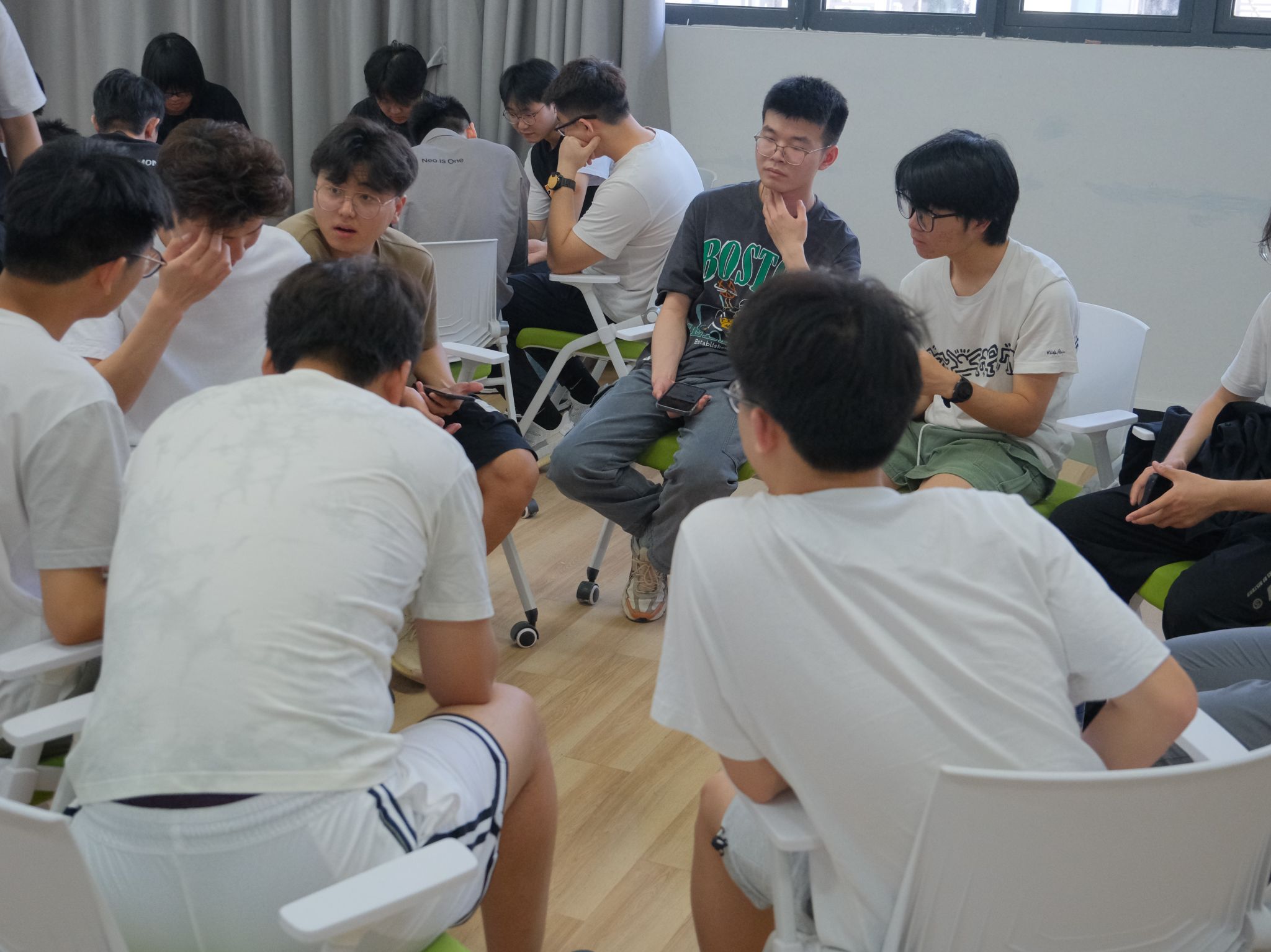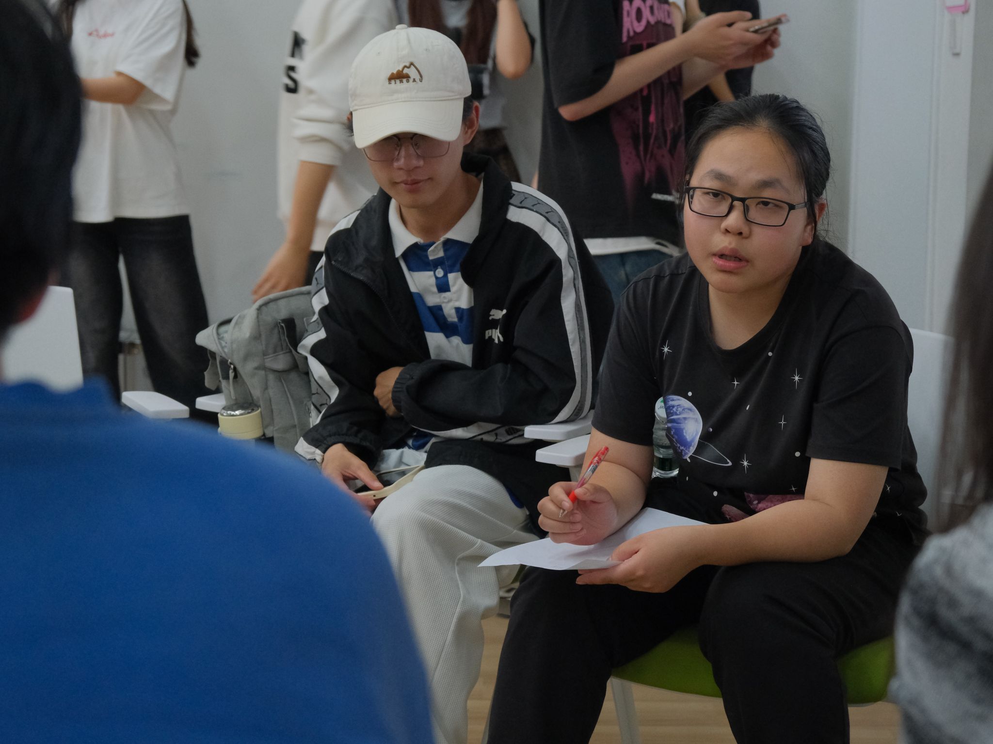 活动以“一小时限时创作”为挑战,参与者共39人,分为9-10人一组,围绕“梦想”“挫折”与“成长”三大关键词展开头脑风暴。从叛逆少年的觉醒到职场新人的破茧成蝶,各小组仅用10分钟便完成了故事大纲的创作。随后的剧本互换环节中,各小组通过完善其他团队的故事实现创意碰撞,最终通过10分钟剧本熟悉环节为舞台呈现做好准备。