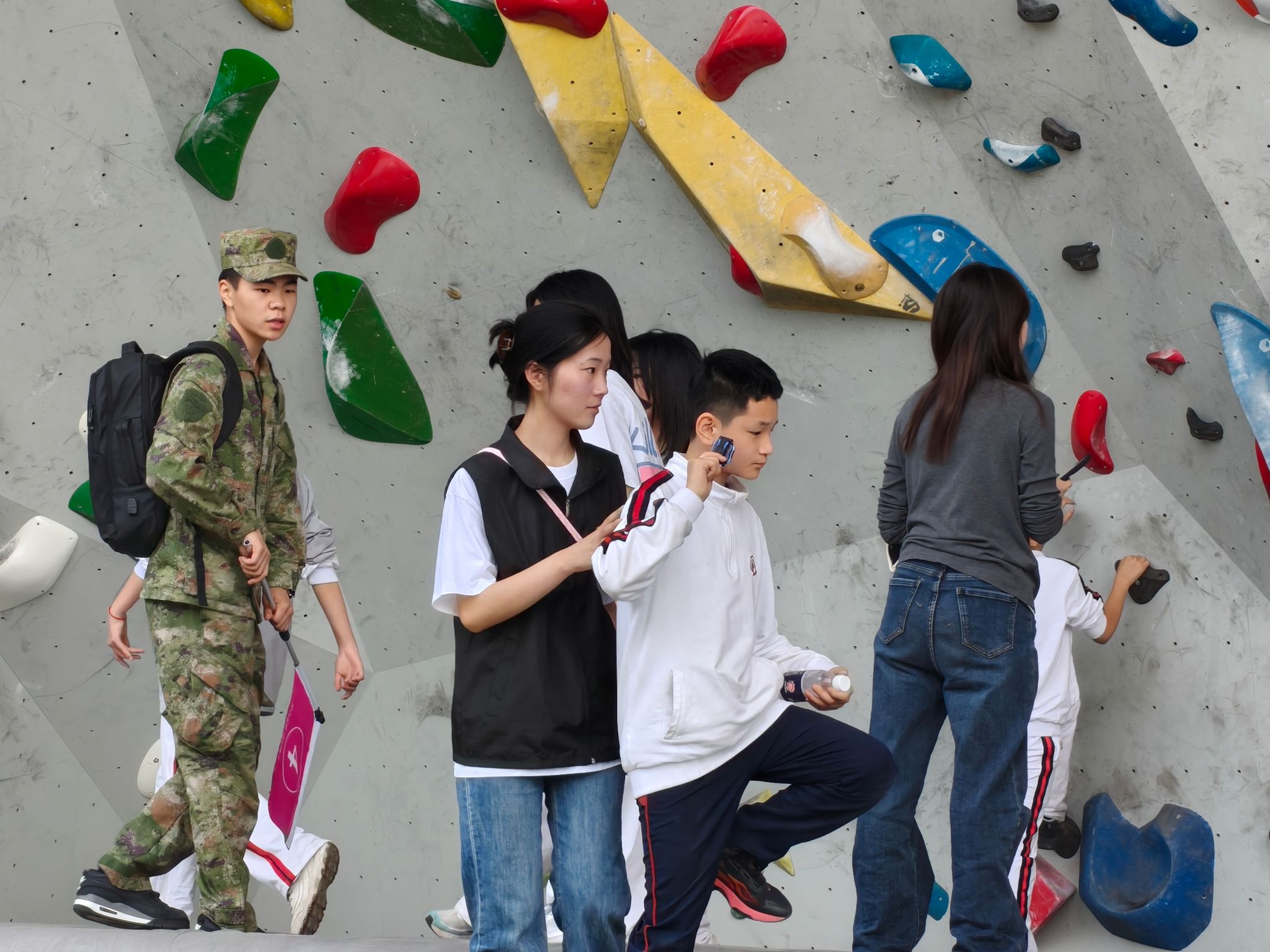 “安全带卡扣要听到‘咔嗒'声”“掌心贴岩点更省力”——队长王宇航将运动心理学融入教学,成功引导7名恐高学生登顶。午间时分,这群00后导师化身生活管家,从餐食分配到座位安排,确保所有学员就餐完毕才匆忙用餐。