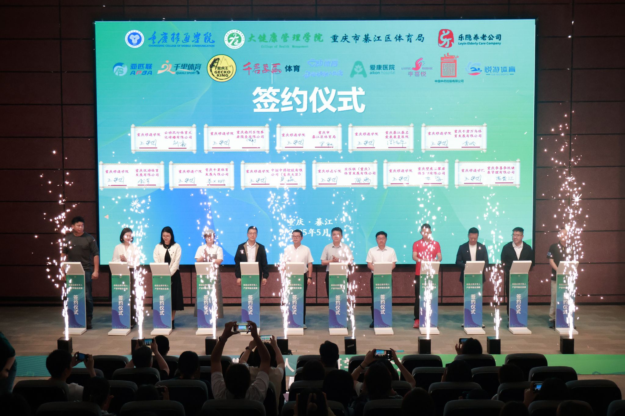 在与会嘉宾的共同见证下,校方代表与政企单位代表共同完成协议签署仪式。此次合作涵盖体育赛事、健康管理、康复医疗、养老服务等多元领域,内容包含共建实训基地、定向人才培养、课程联合开发及科研项目协同申报等深度模式。