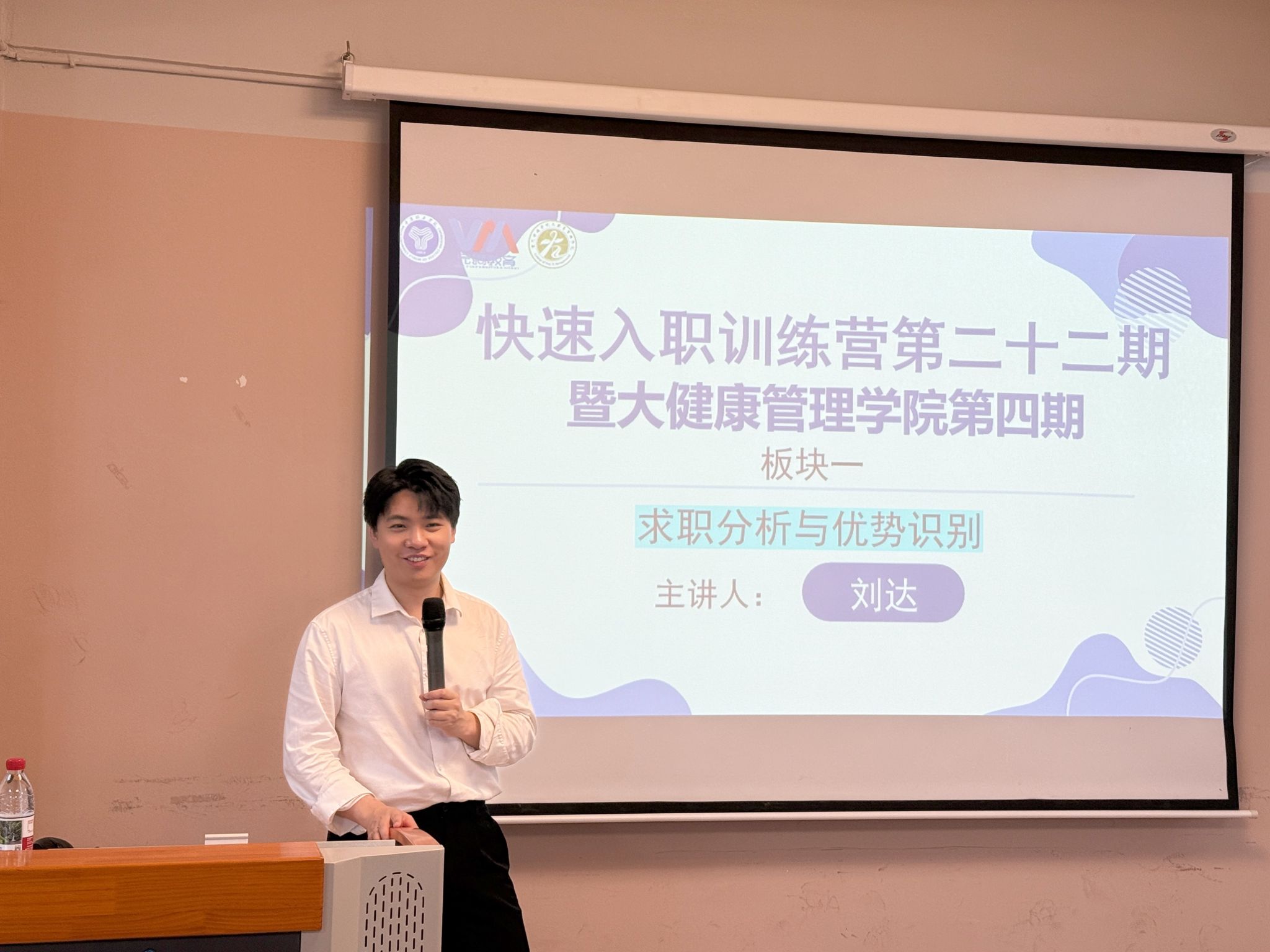 为助力大学生更好地应对就业挑战,搭建起就业者之间的交流平台,大健康管理学院于5月14日下午在綦河书院小石潭多功能室举办求职分析与优势识别——綦江校区“快速入职训练营”第二十二期暨大健康管理学院第四期主题活动。本次活动特邀重庆移通学院就业创业中心高级导师刘达老师担任主讲,从行业趋势、简历优化、优势挖掘等多维度,为同学们带来了一场干货满满的职业指导盛宴。