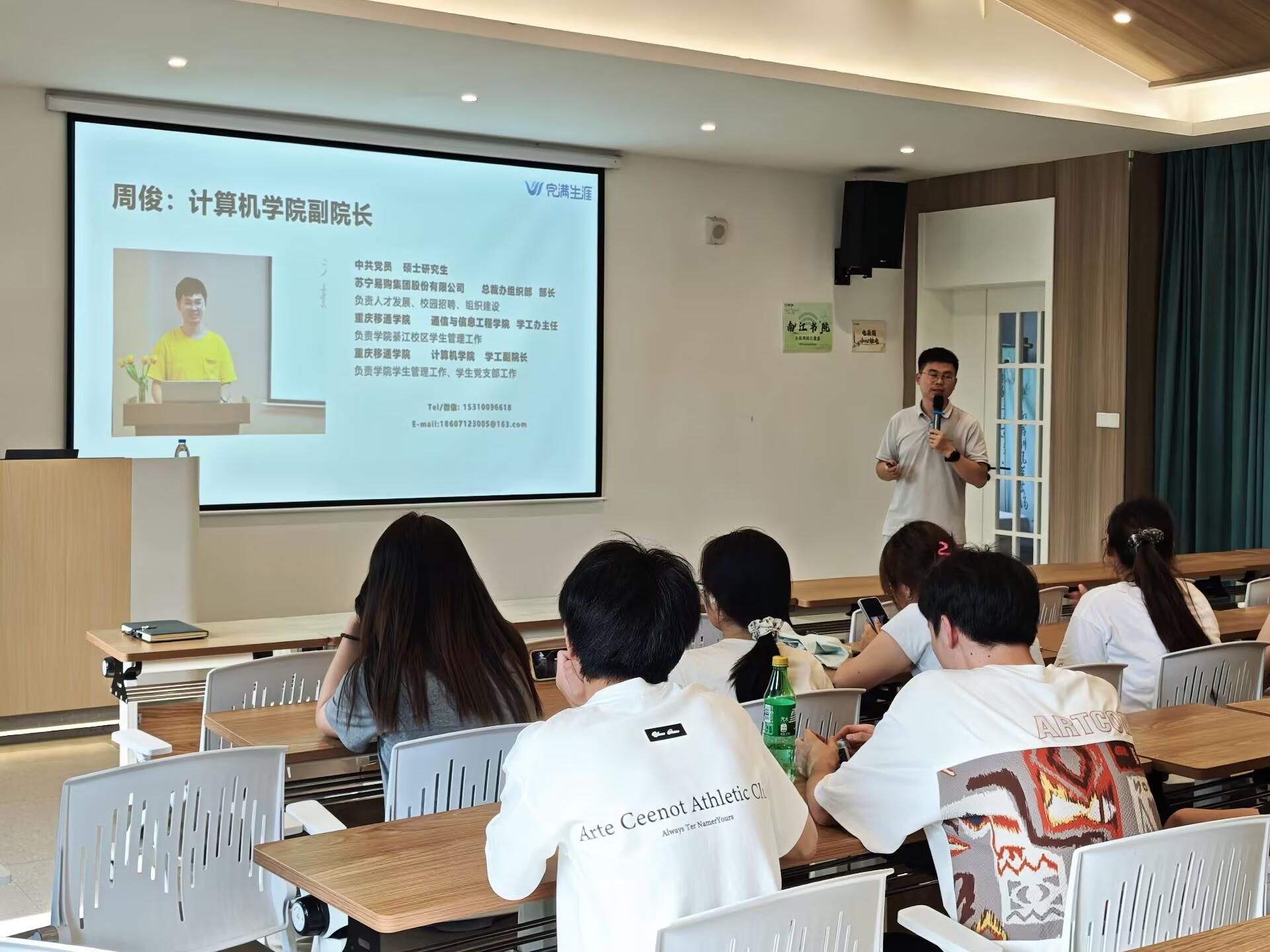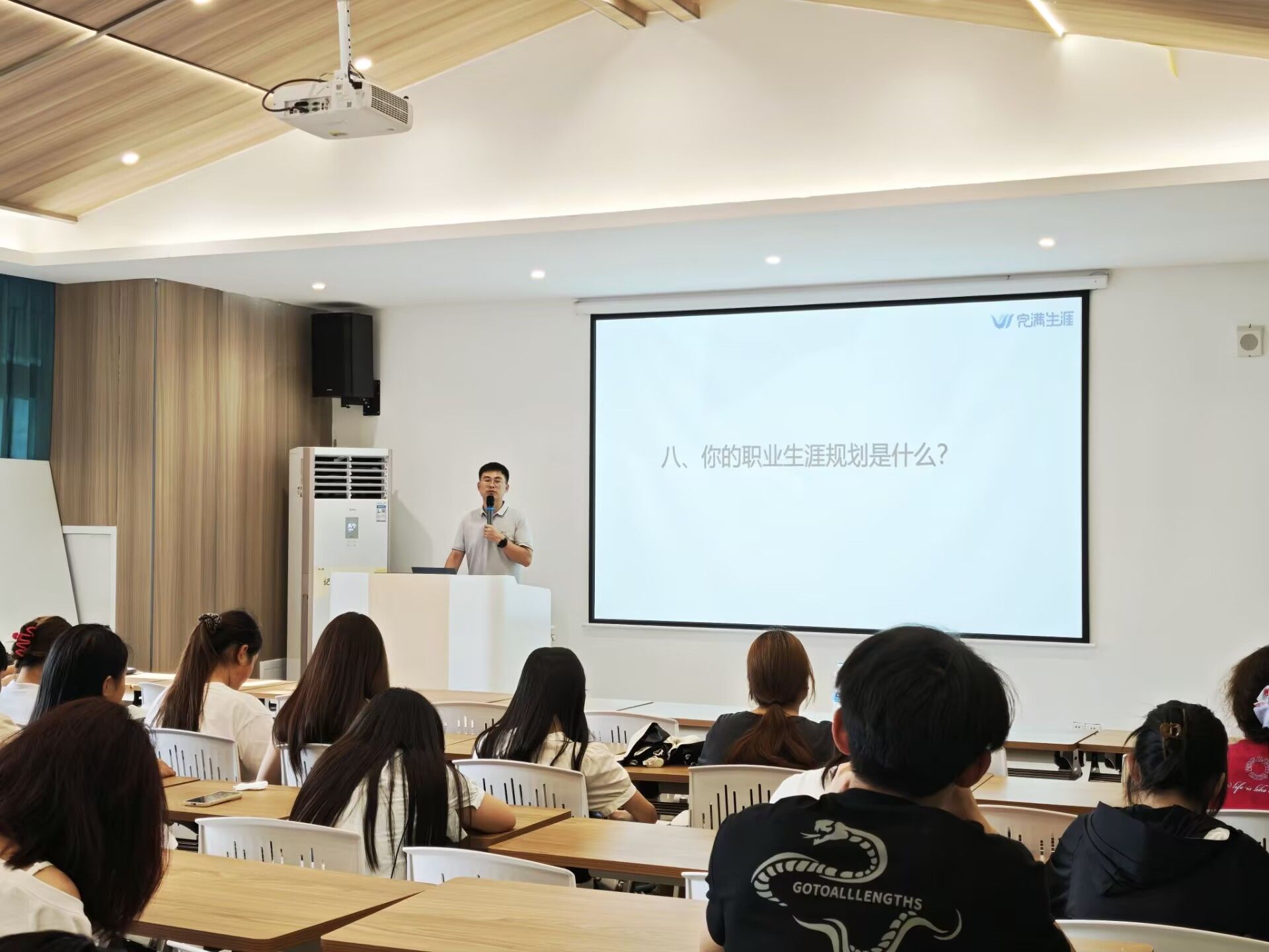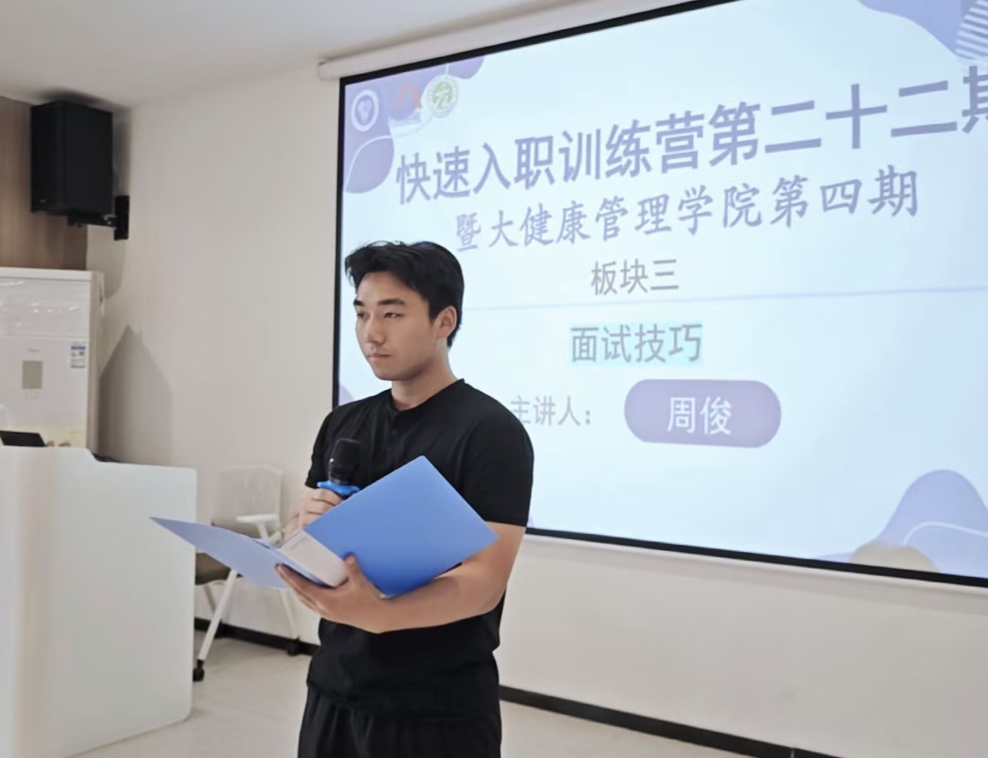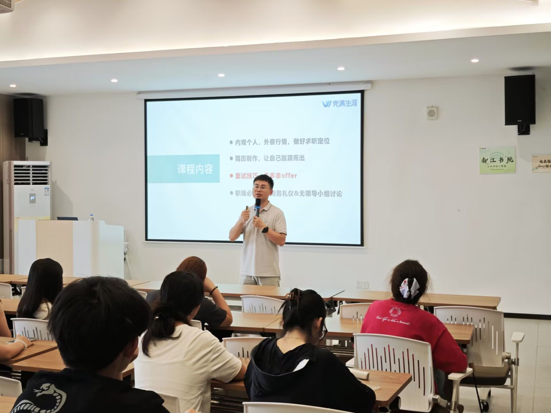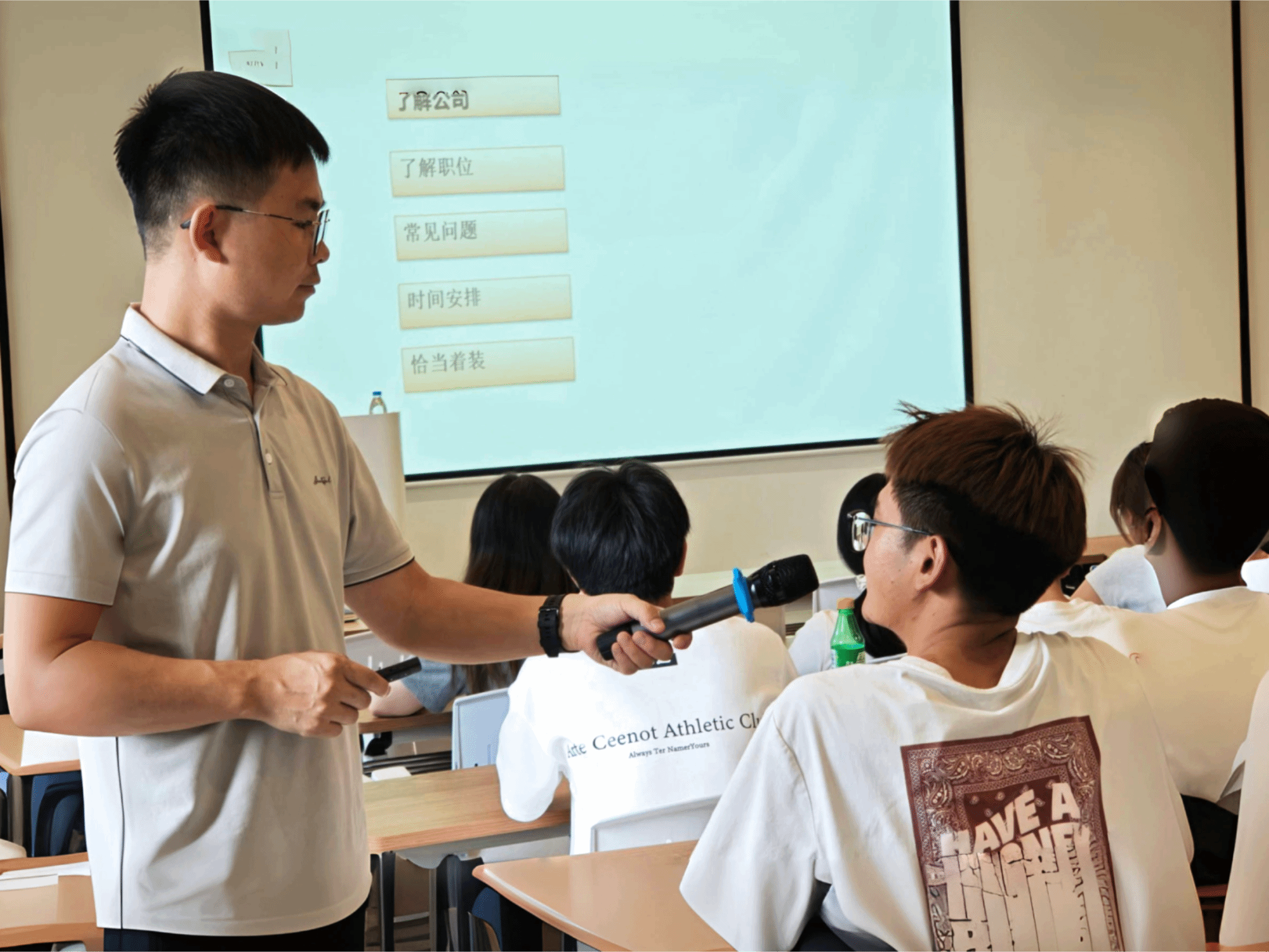 周俊老师以当前就业形势破题,解析毕业生面临的机遇与挑战,强调面试在求职中的关键作用,迅速吸引全场关注。随后,他结合企业需要与面试者自我条件,围绕面试前的准备、面试中的沟通技巧、面试后的跟进等多个方面展开详细讲解,构建起完整的面试能力提升框架。