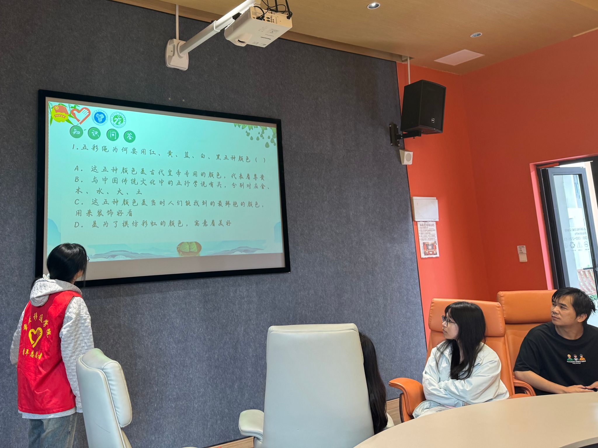 “五彩绳为何要用五种颜色?”“香囊里的艾草有什么寓意?”活动伊始,主持人以一段生动的历史讲解带领参与者们穿越时空。从战国时期屈原投江的爱国传说,到汉代“蓄兰沐浴”的驱疫习俗,再到唐宋时期五彩绳、香囊成为全民风尚的文化演变,主持人用丰富的史料和鲜活的故事,勾勒出端午节作为“卫生节”“祈福节”“爱国节”的多元文化内涵。
