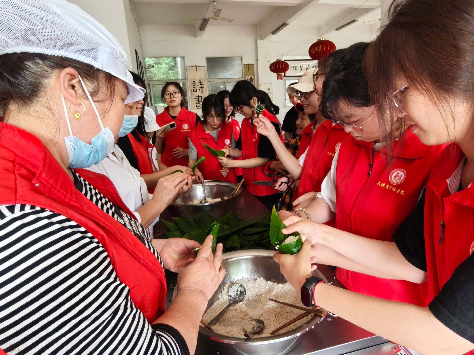 青丝与银发共舞,传统与青春共鸣。一只只棱角分明的粽子,承载着跨越代际的关怀,更承载着跨越代际的深深关怀与祝福,凝聚着校企双方服务社会、关爱长者的赤诚初心。当敬老院的餐桌上端出这些手工粽时,端午的暖意已随三江之水,流入每位长者的心田。