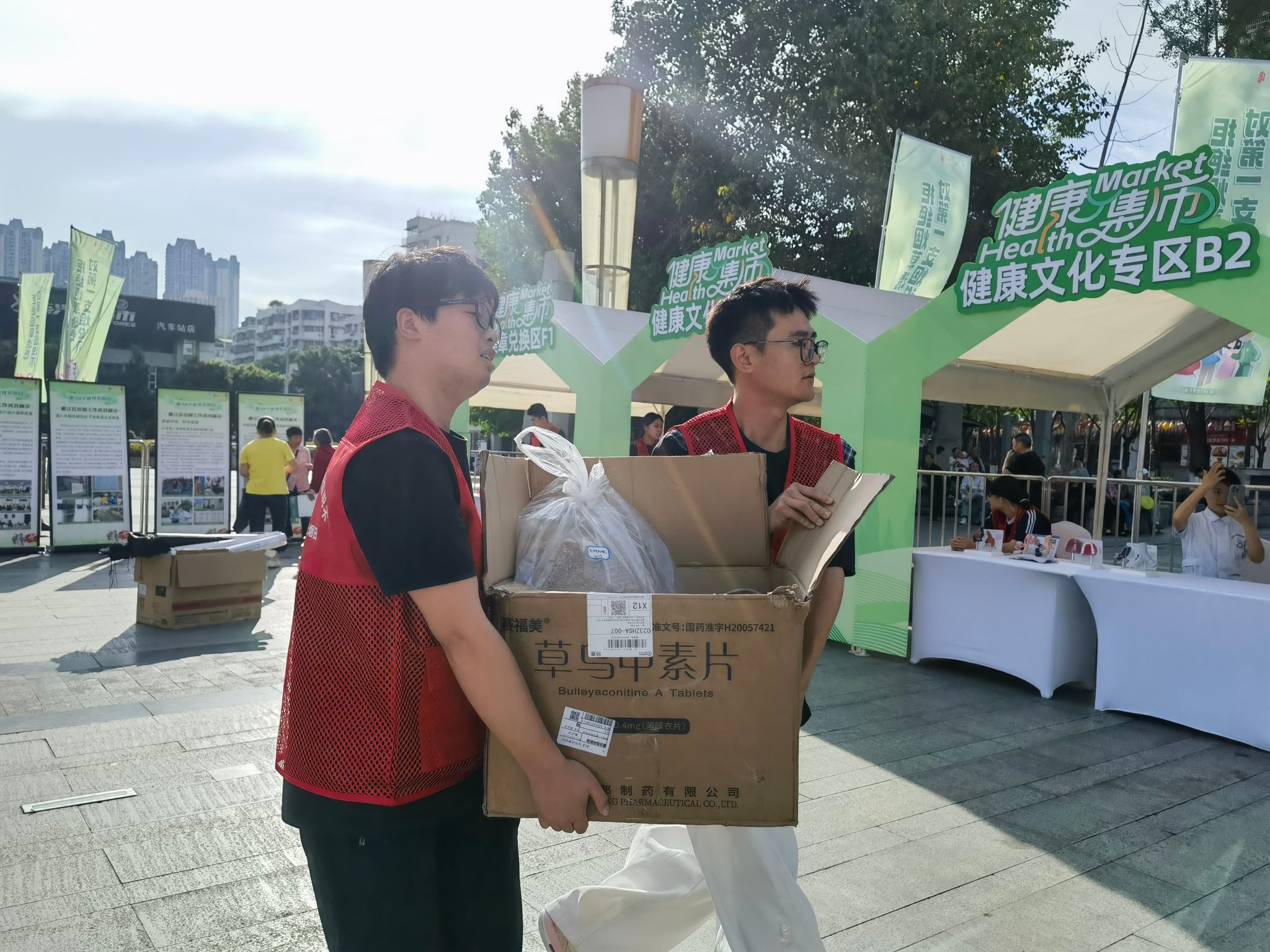 学院充分发挥学科优势,结合学生专业背景,科学调配人力资源。志愿服务小队,在綦江区卫健委及中医院指导下,高效完成了“健康集市”四个特色点位的搭建与运营。